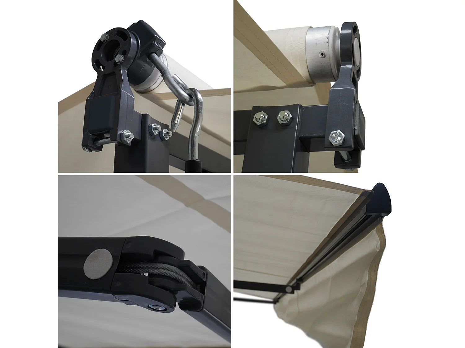 Store double pente FRENE sur pieds 3,95 x 3 m - Toile beige et structure grise - HAPPY GARDEN