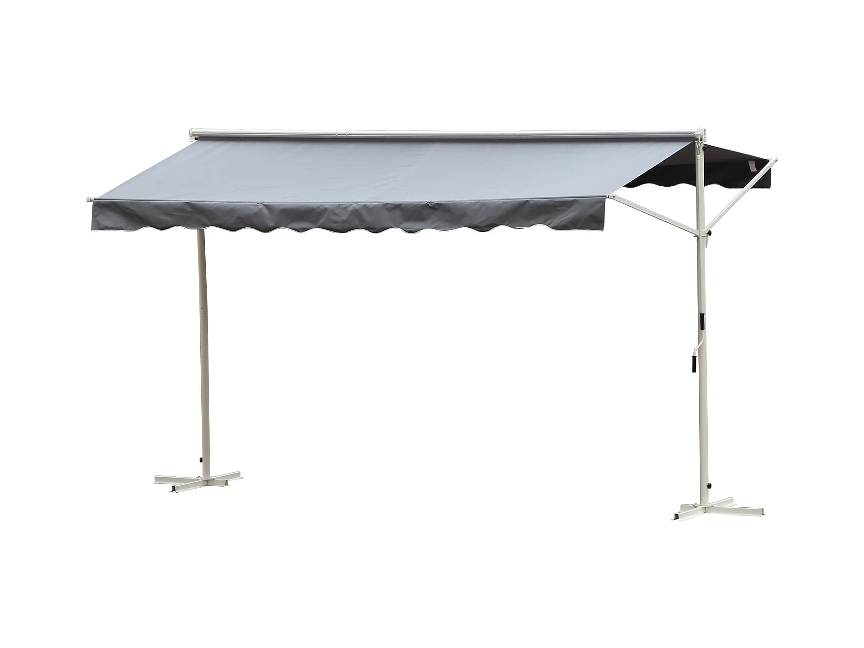 Store double pente manuel rétractable inclinaison réglable métal époxy blanc polyester imperméabilisé anti-UV gris dim. 3,95L x 2,98l x 2,55H m