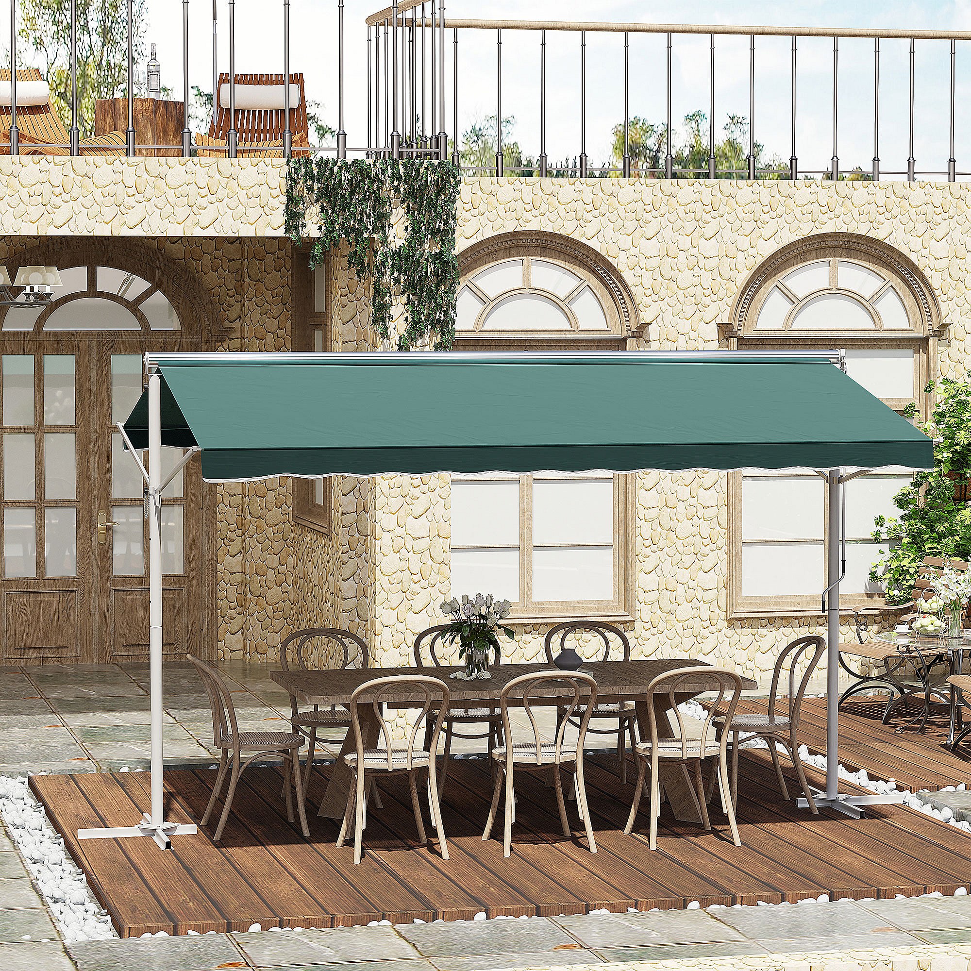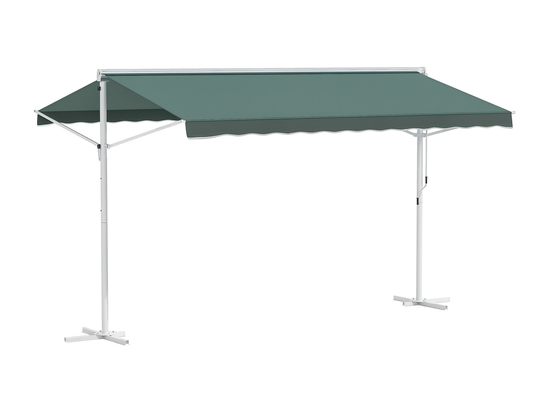 Store double pente manuel rétractable inclinaison réglable métal époxy blanc polyester imperméabilisé anti-UV vert dim. 3,95L x 2,98l x 2,55H m