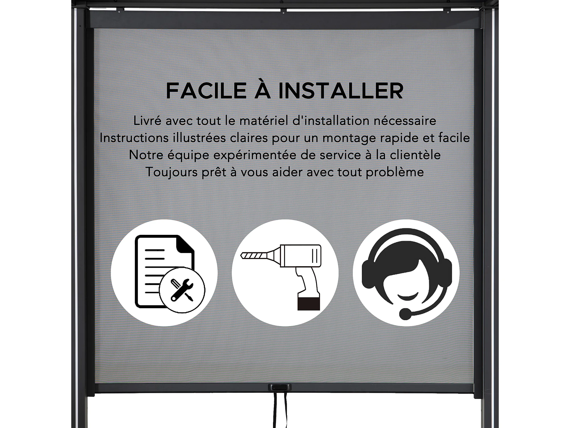 Store enrouleur réglable SUNJOY pour pergola à lames orientables (côté de 2 m)