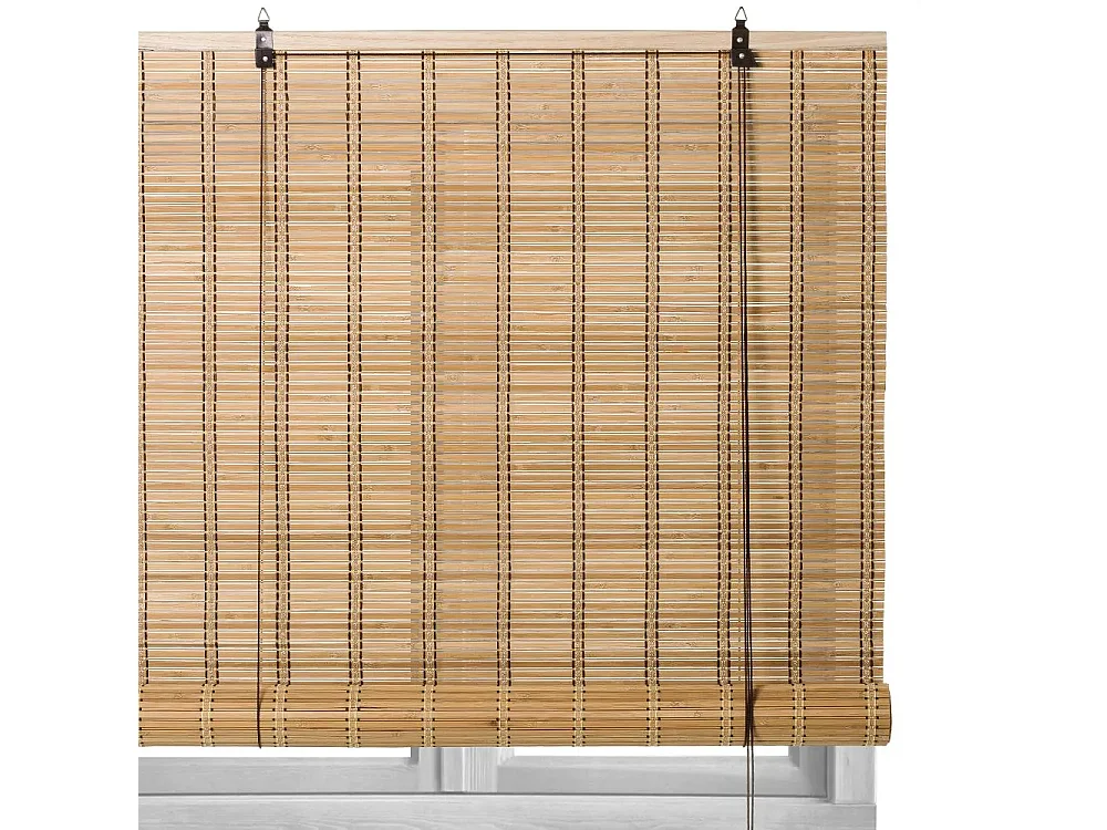 Store enrouleur retrousser en bambou coloris beige, store à rouleau aveugle, rideau occultant - Longueur 180 x Profondeur 90 x Hauteur 2.5 cm