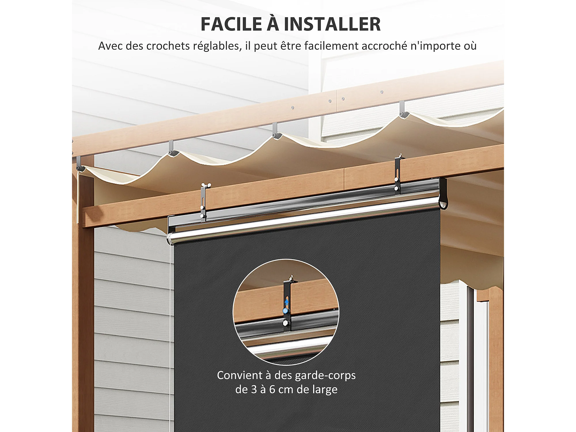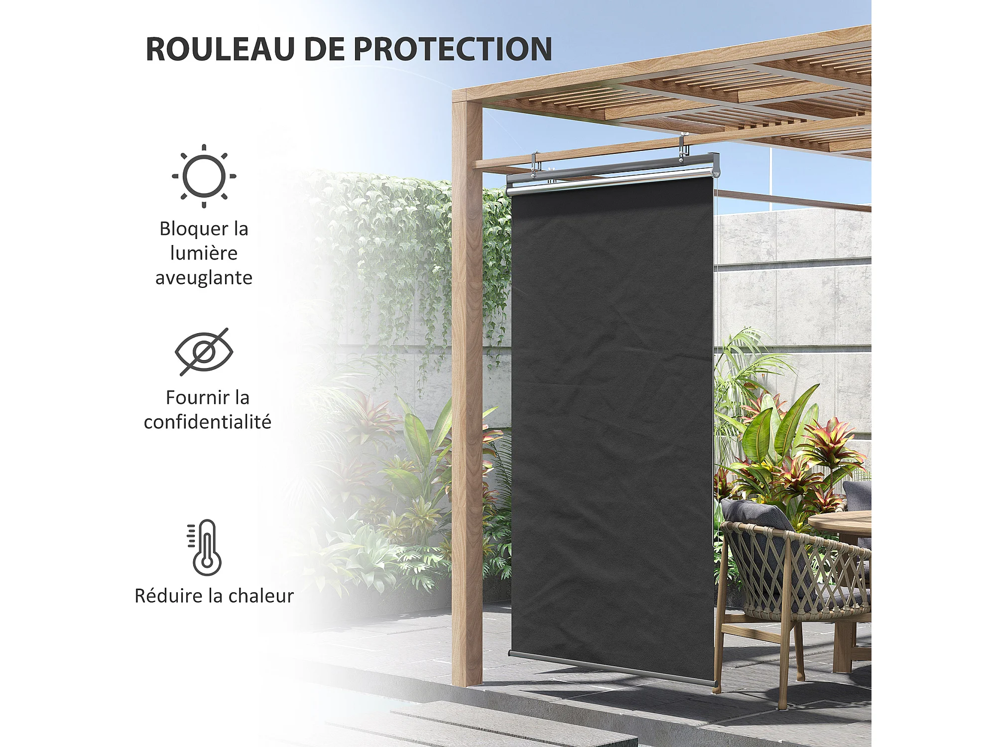 Store extérieur vertical store manuel rétractable dim. 124L x 5l x 222H cm installation sans perçage alu. acier polyester gris