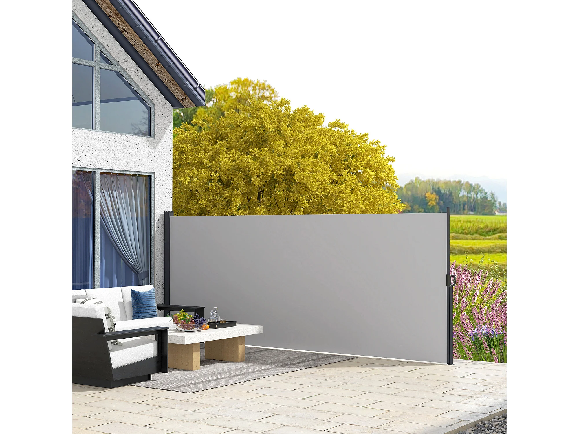 Store latéral brise-vue paravent rétractable de jardin dim. 3 x 2 m alu. polyester gris clair