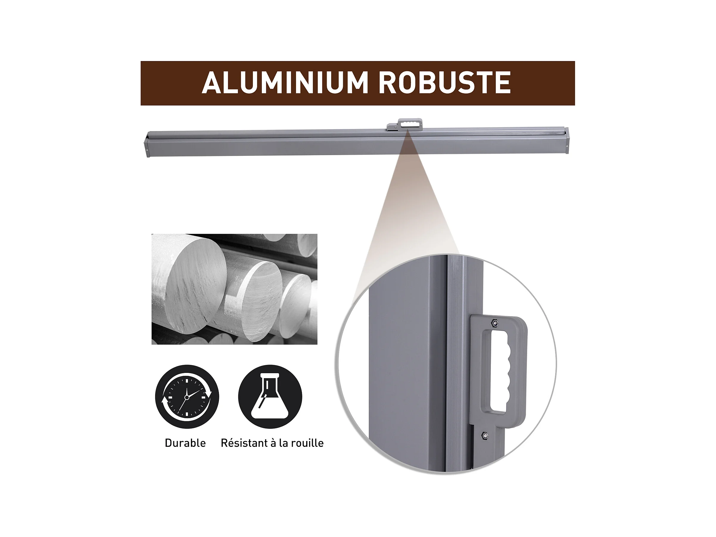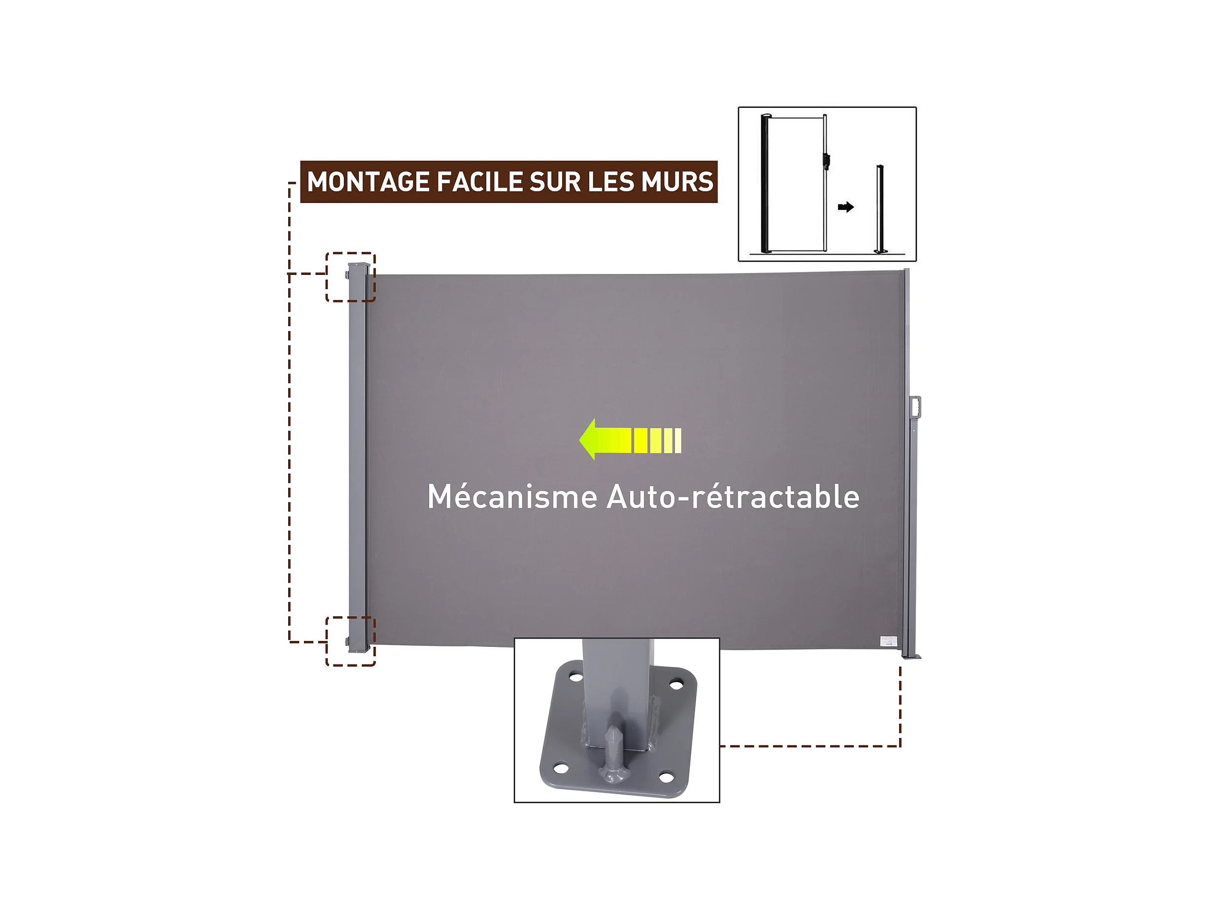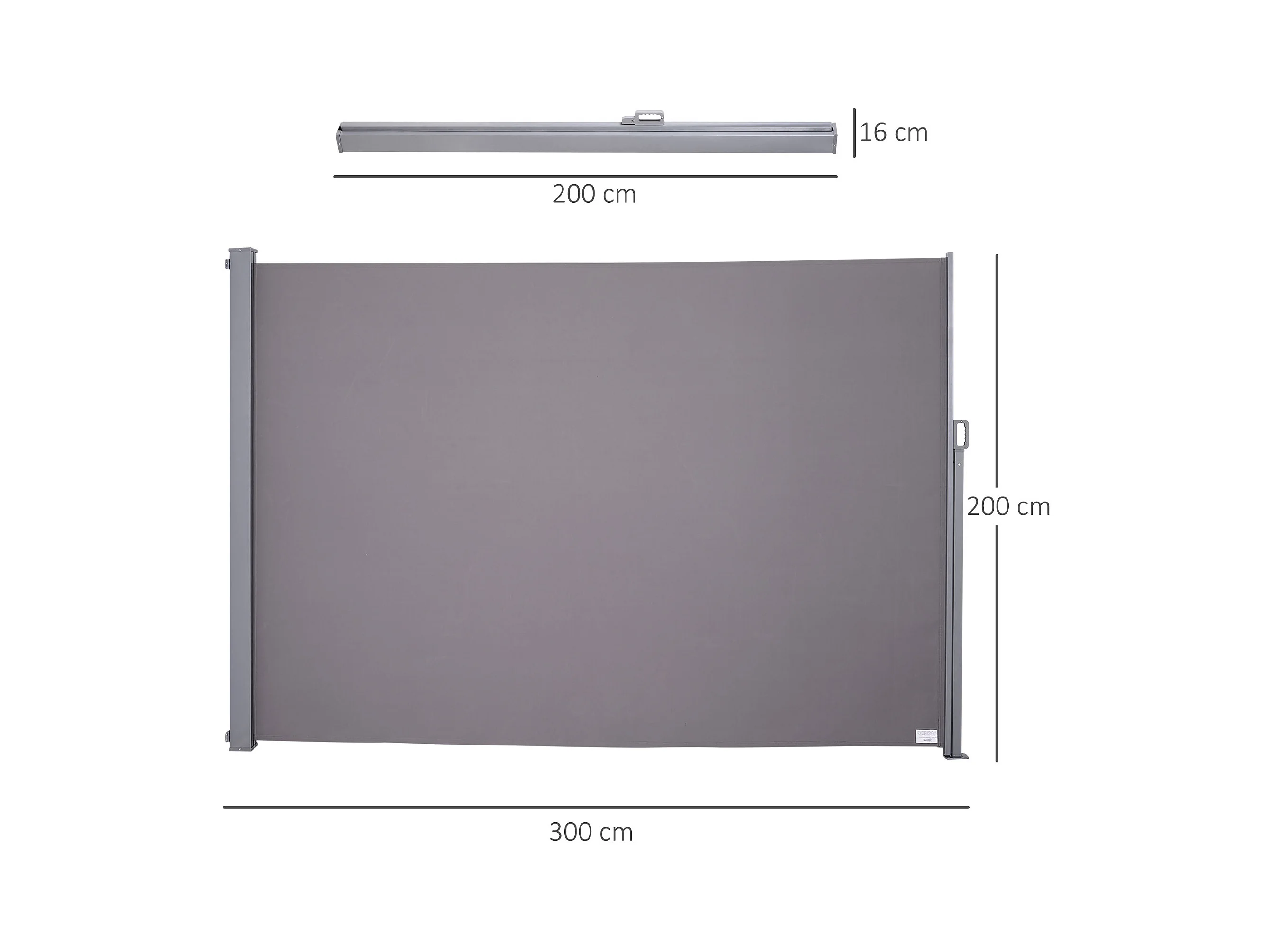 Store latéral brise-vue paravent rétractable dim. 3L x 2H m alu. polyester anti-UV haute densité 280 g/m² gris