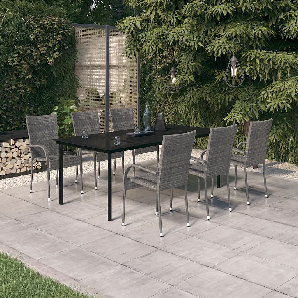 Stoughton Ensemble à manger de jardin 7 pcs Gris et noir