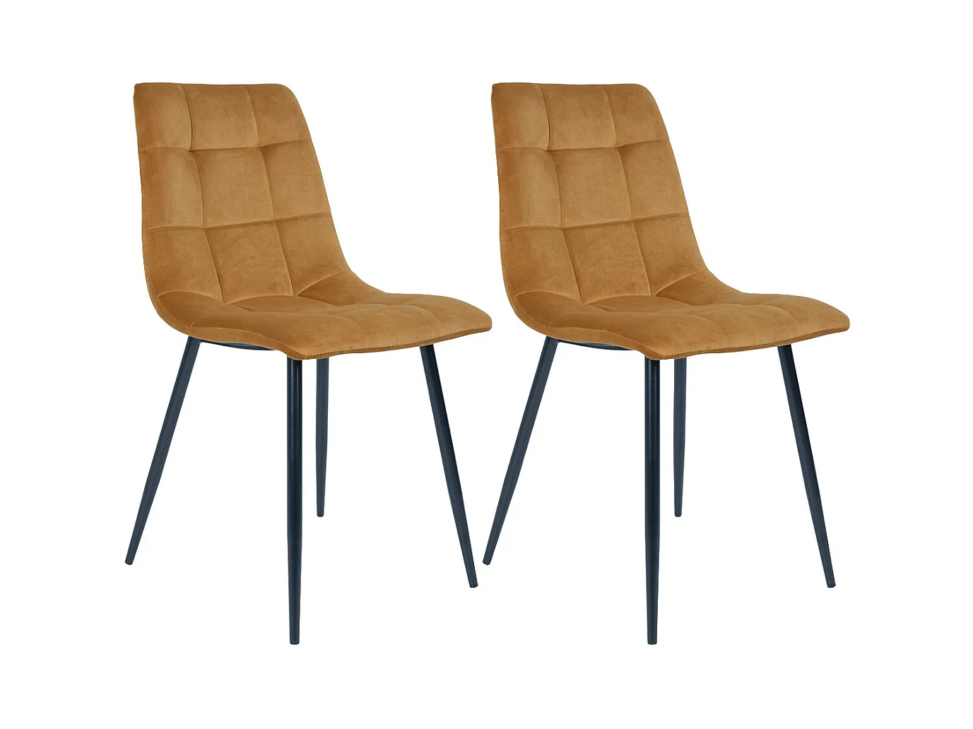 STRIB - Lot de 2 Chaises Velours Jaune et Piétement Acier