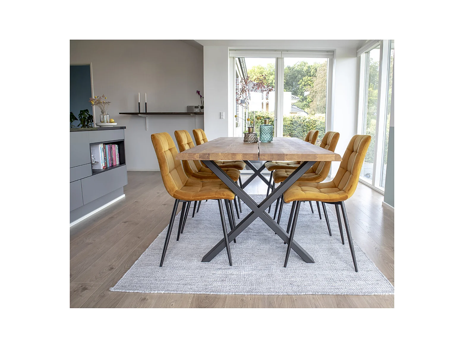 Chaise de salle à manger capitonnée en velours jaune moutarde ODUNA