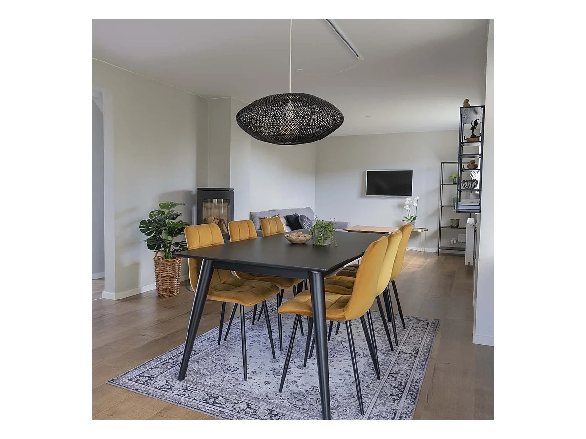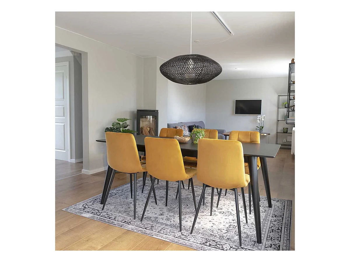 Lot de 2 chaise salle à manger - Velours & Noir - Jaune - Rahden