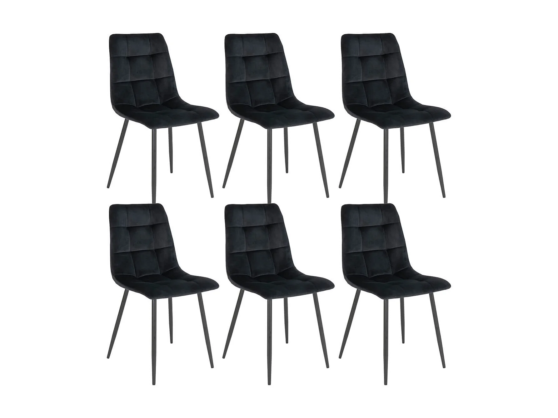 STRIB - Lot de 6 Chaises Velours Noir et Piétement Acier