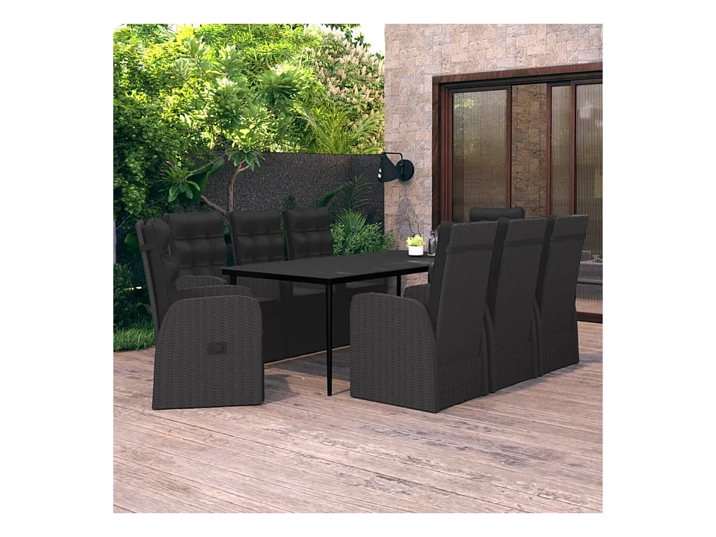 Stubbekøbing Ensemble à manger de jardin avec coussins 9 pcs noir