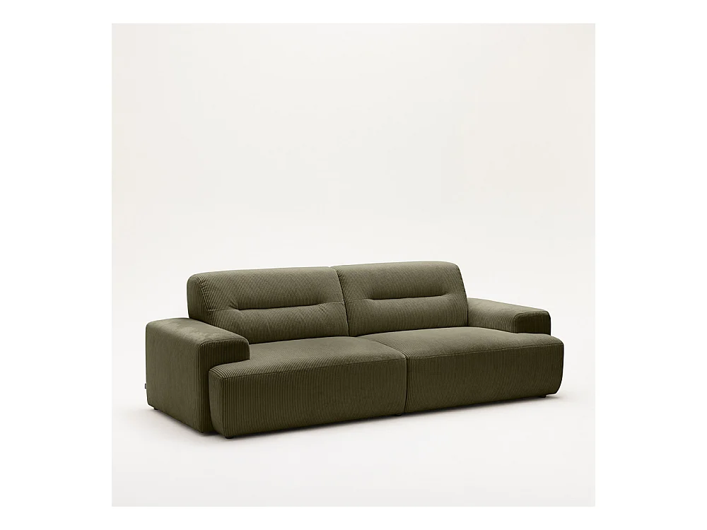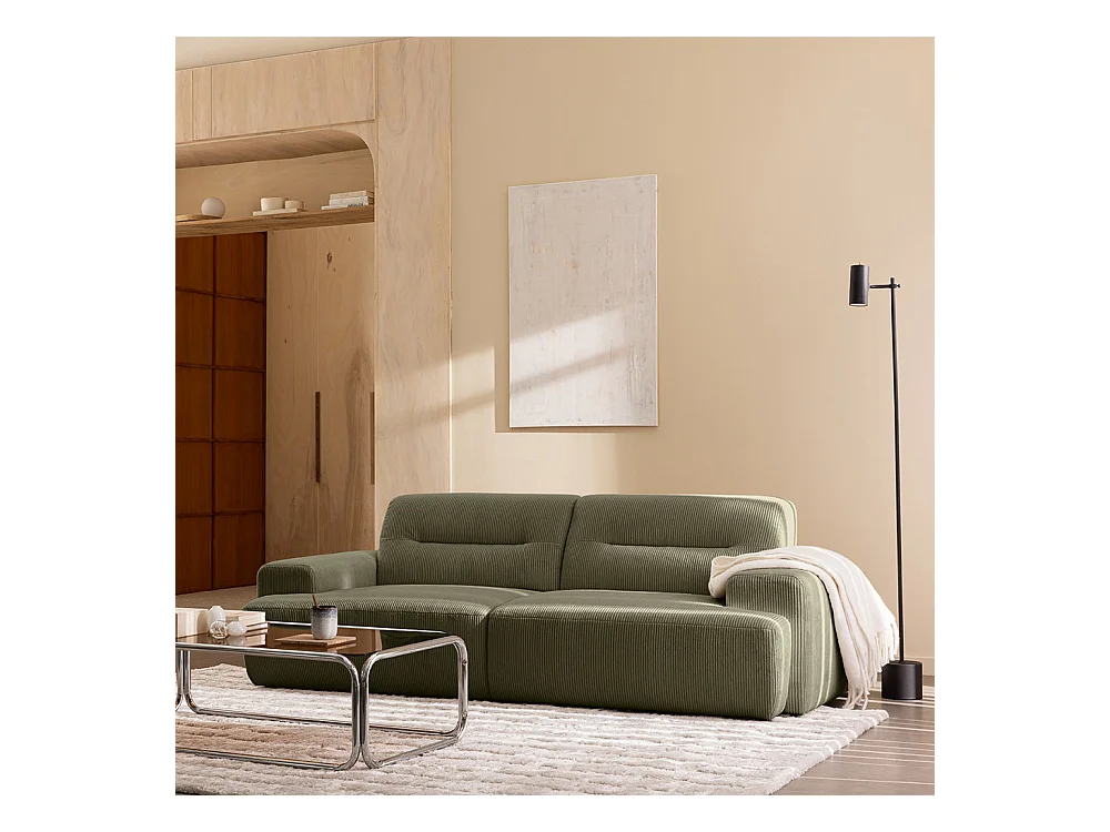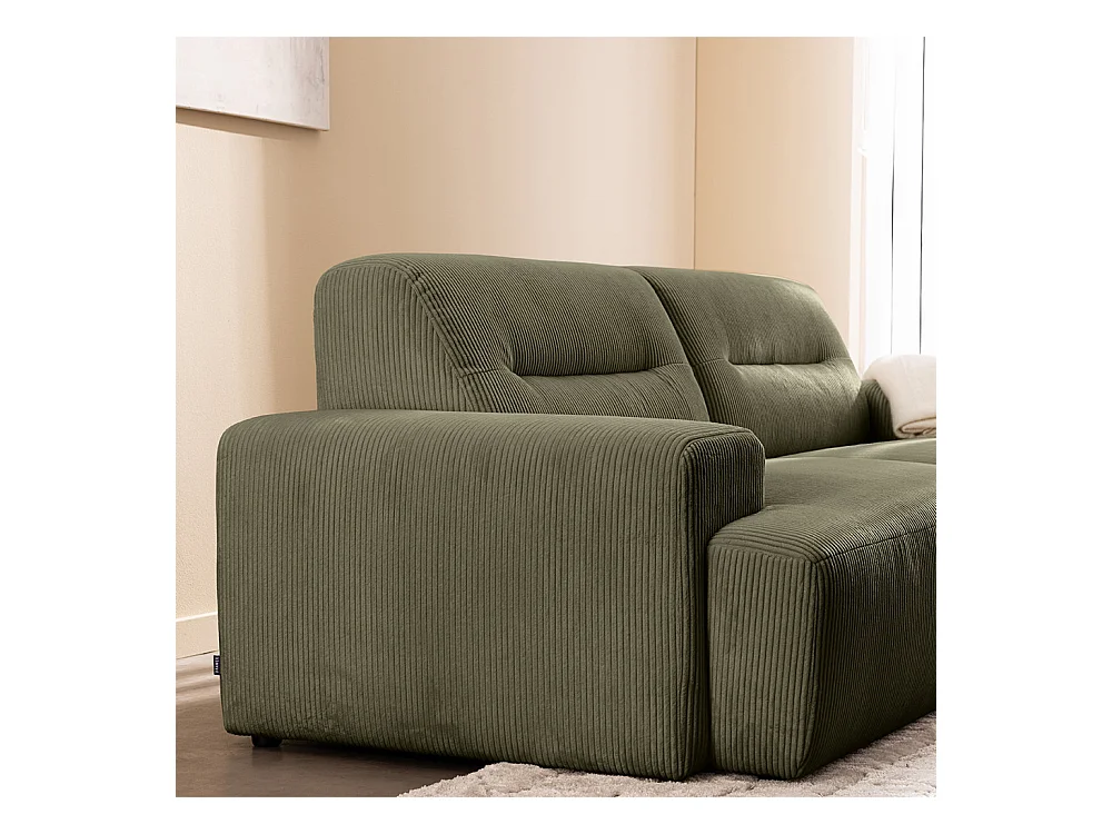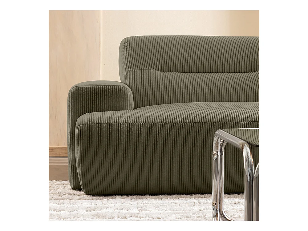 Stune - Canapé droit 4 places en velours côtelé à accoudoirs larges - Vert