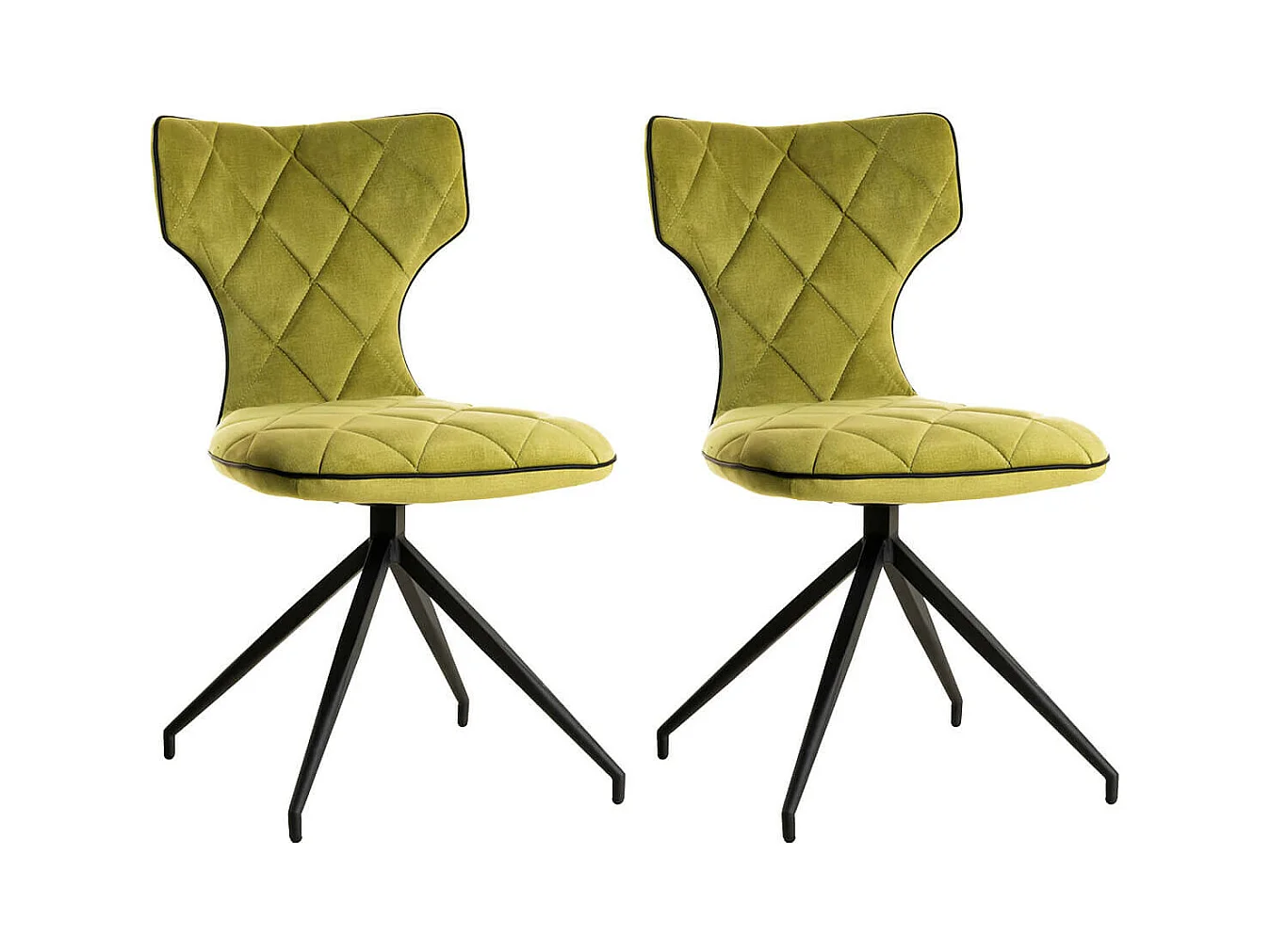 STYK - Lot de 2 Chaises Tissu Vertes Surpiqures Carreaux
