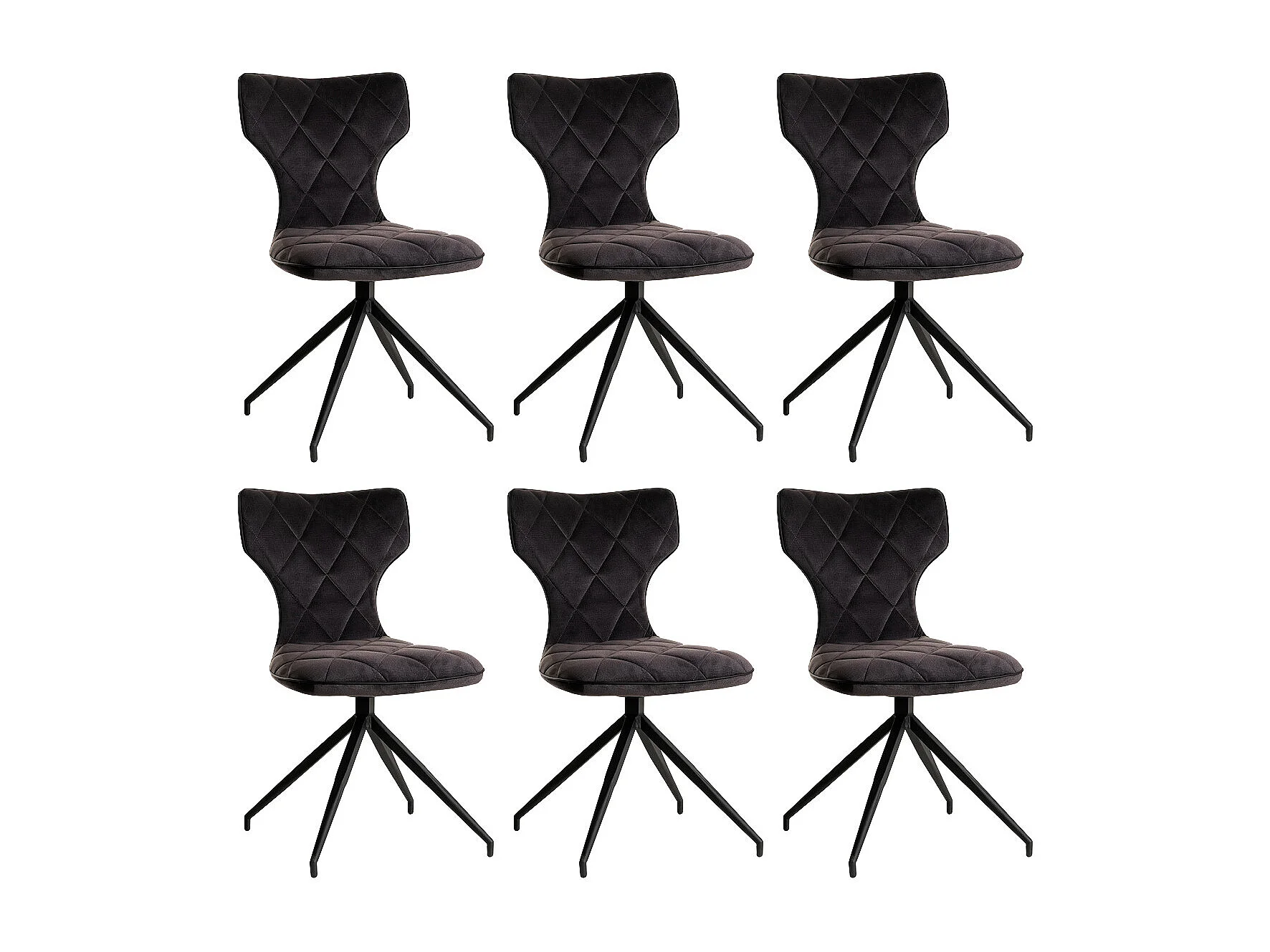 STYK - Lot de 6 Chaises Tissu Grises Surpiqures Carreaux