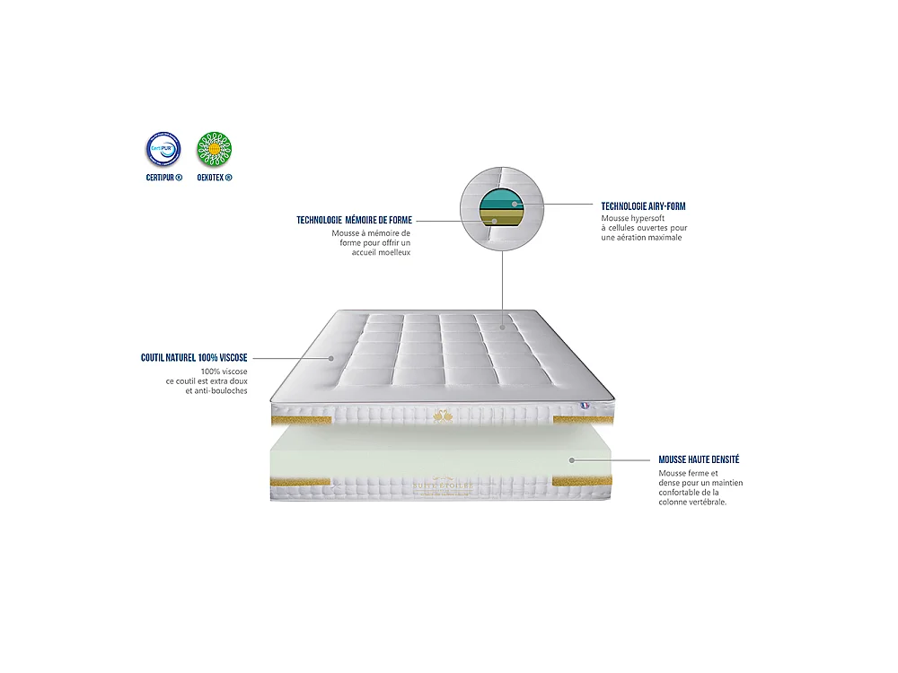 SUITE ETOILEE | Matelas SUITE IMPERIALE 140x190 cm | Mousse à mémoire de forme | Soutien Ferme
