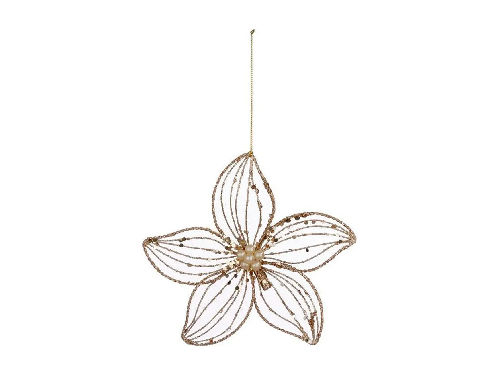Sujet de Noël Déco "Fleurs Paillettes" 15cm Or