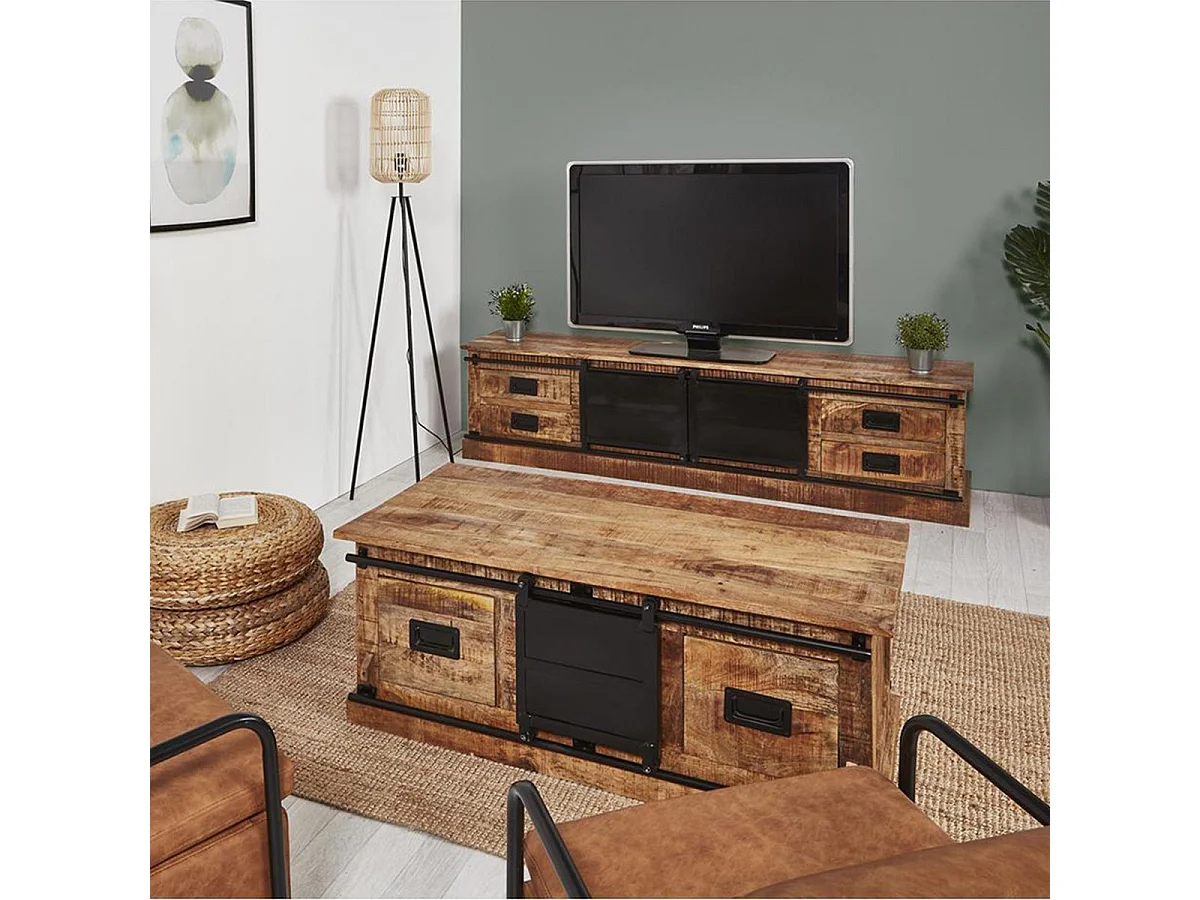 SUMATRA - Meuble TV Manguier et Métal Noir
