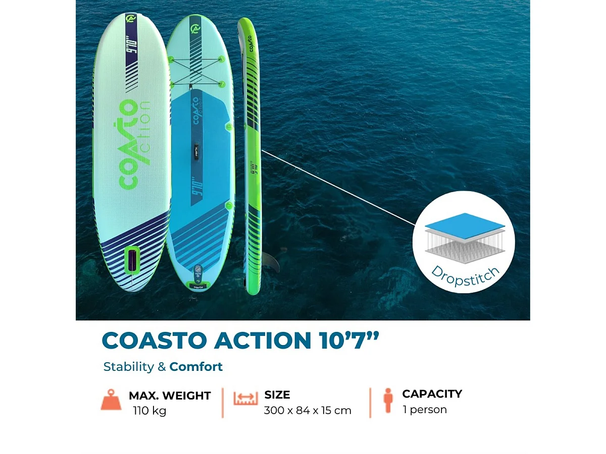 Sup Gonflable All-Round Action 9'10 - 300x84x15cm Dropstitch - Pack Pagaie Leash Pompe Sac de Transport