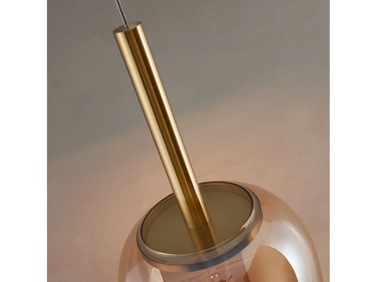 Suspension raffinée cloche dorée verre ambré LED intégrée - Eriska