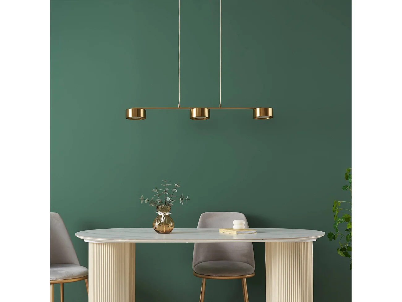 Suspension triple métal laiton 3 spots LED dimmable - Prins