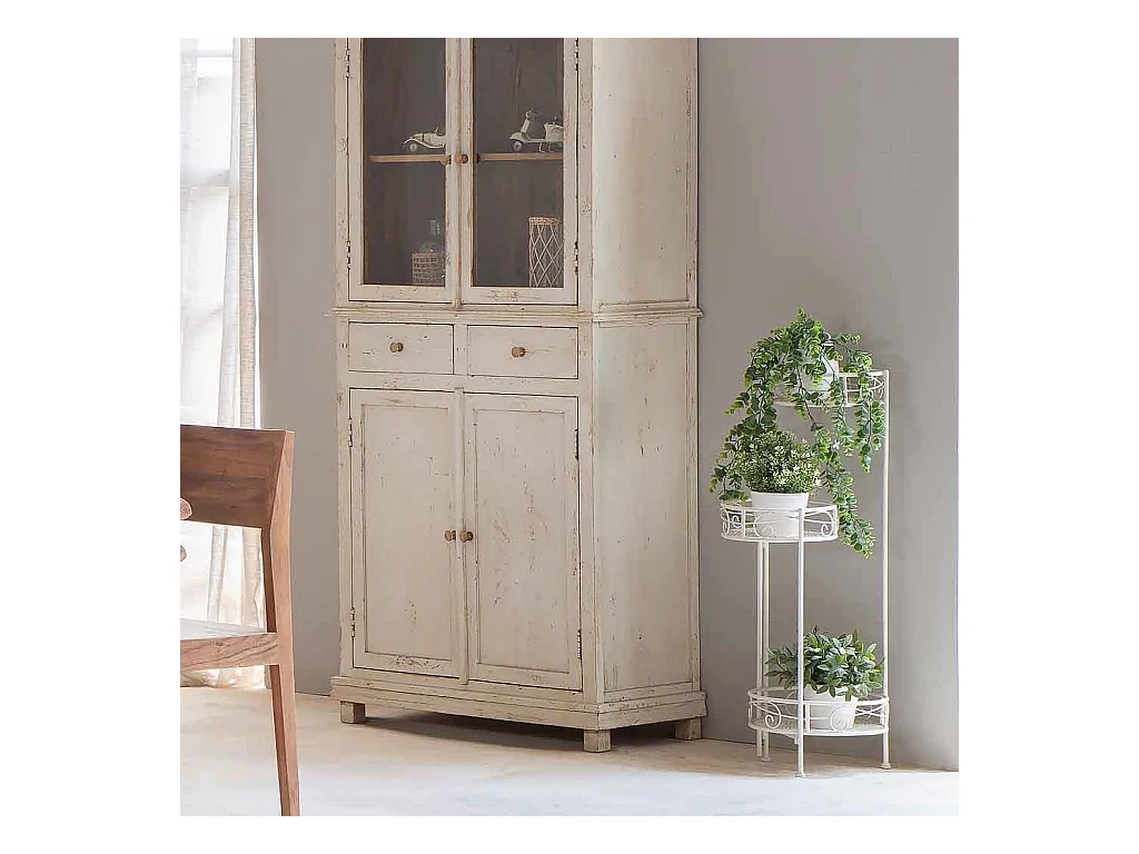 Support pour pots de fleurs en métal blanc 80x44x44h