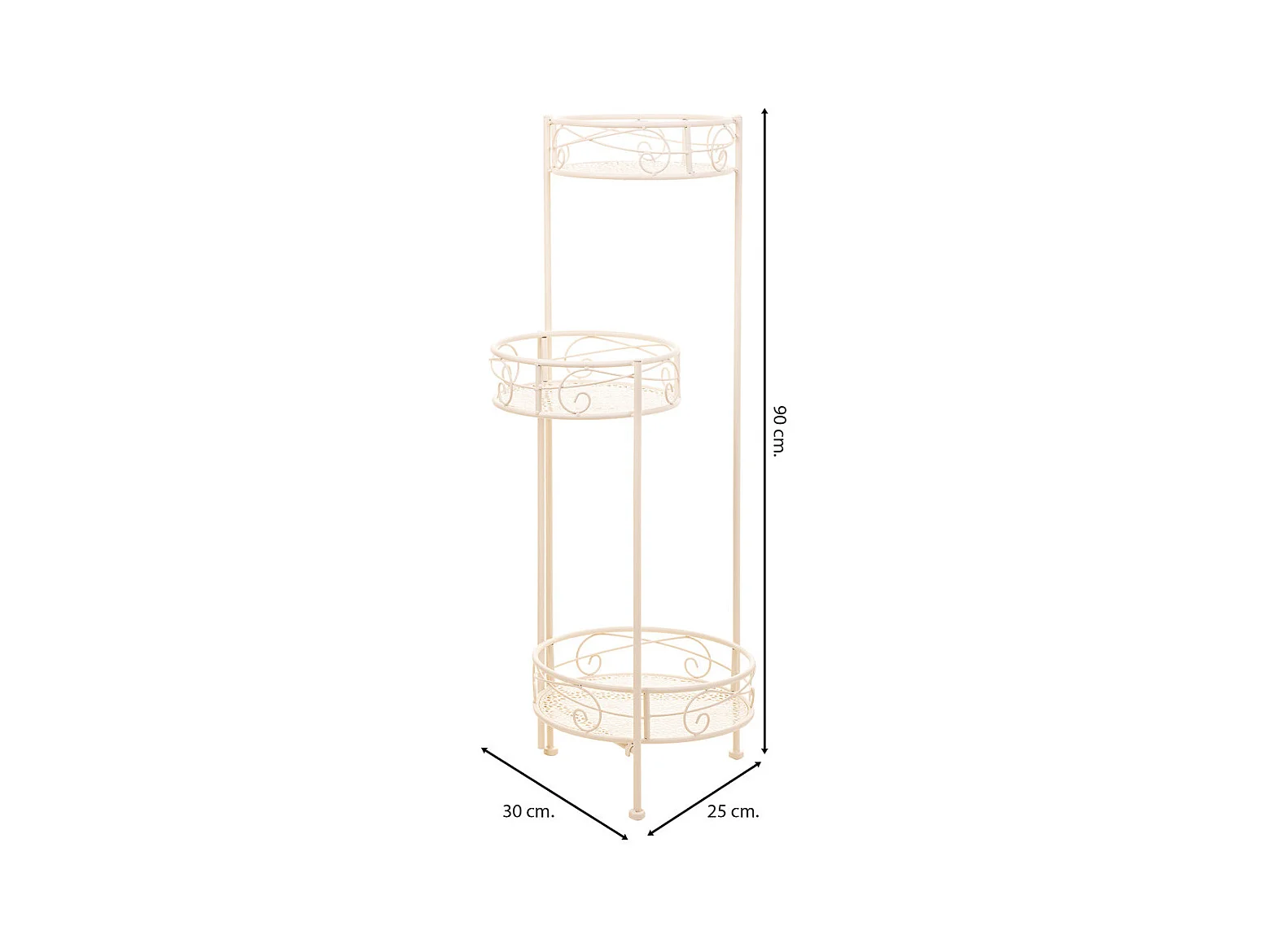Support pour 3 pots en fer forgé blanc 30x25x90