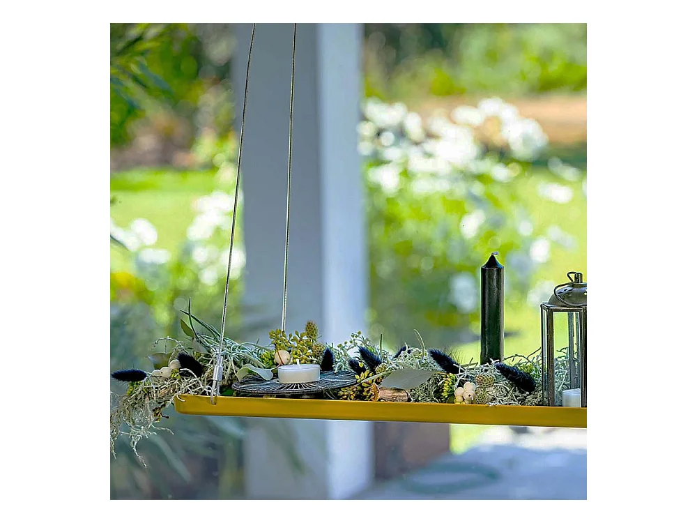 Support à plantes rectangulaire à suspendre doré Longueur de 58 cm