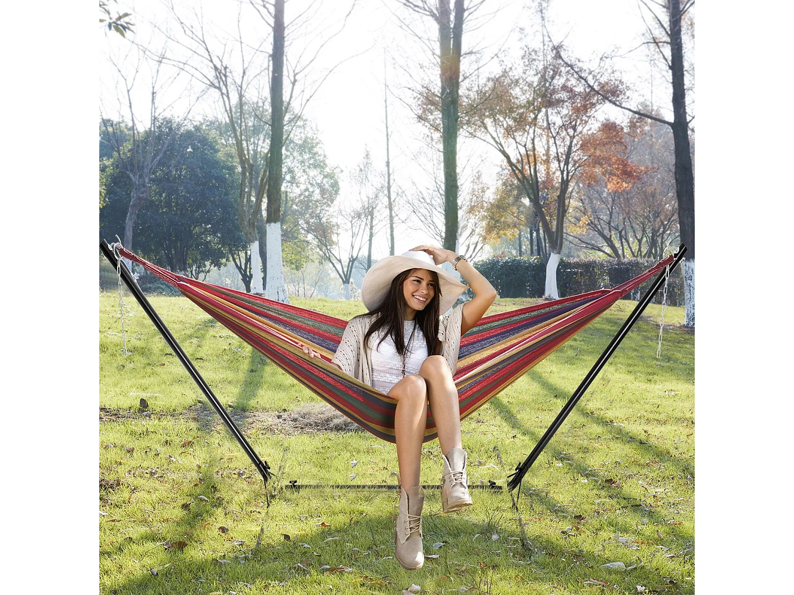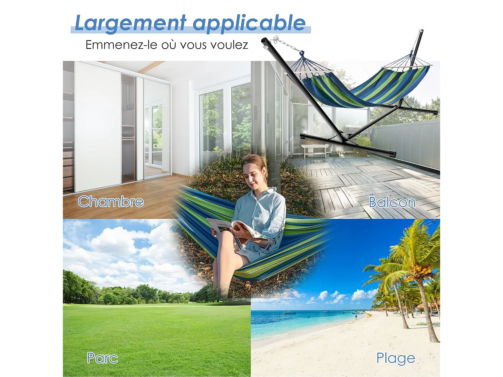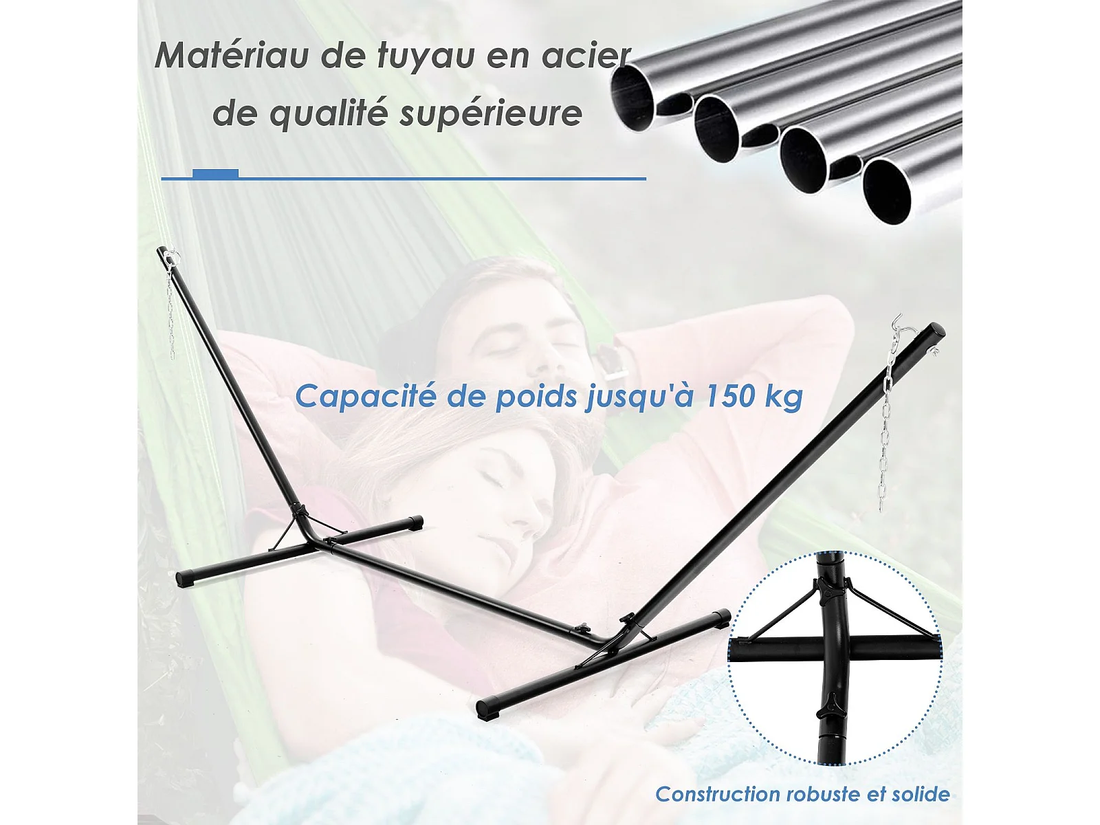 Support de Hamac en Métal 325 x 100 x 106 cm Charge 150 KG Chaîne Réglable avec Crochets pour Intérieur Extérieur(Noir)