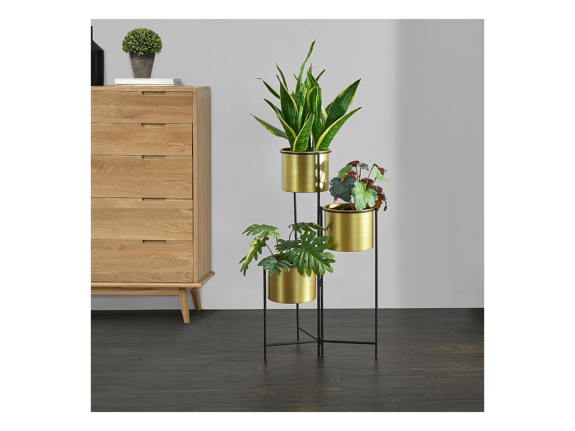 Support de plante (à 3 cache-pots) Kallo métal laiton [en.casa]
