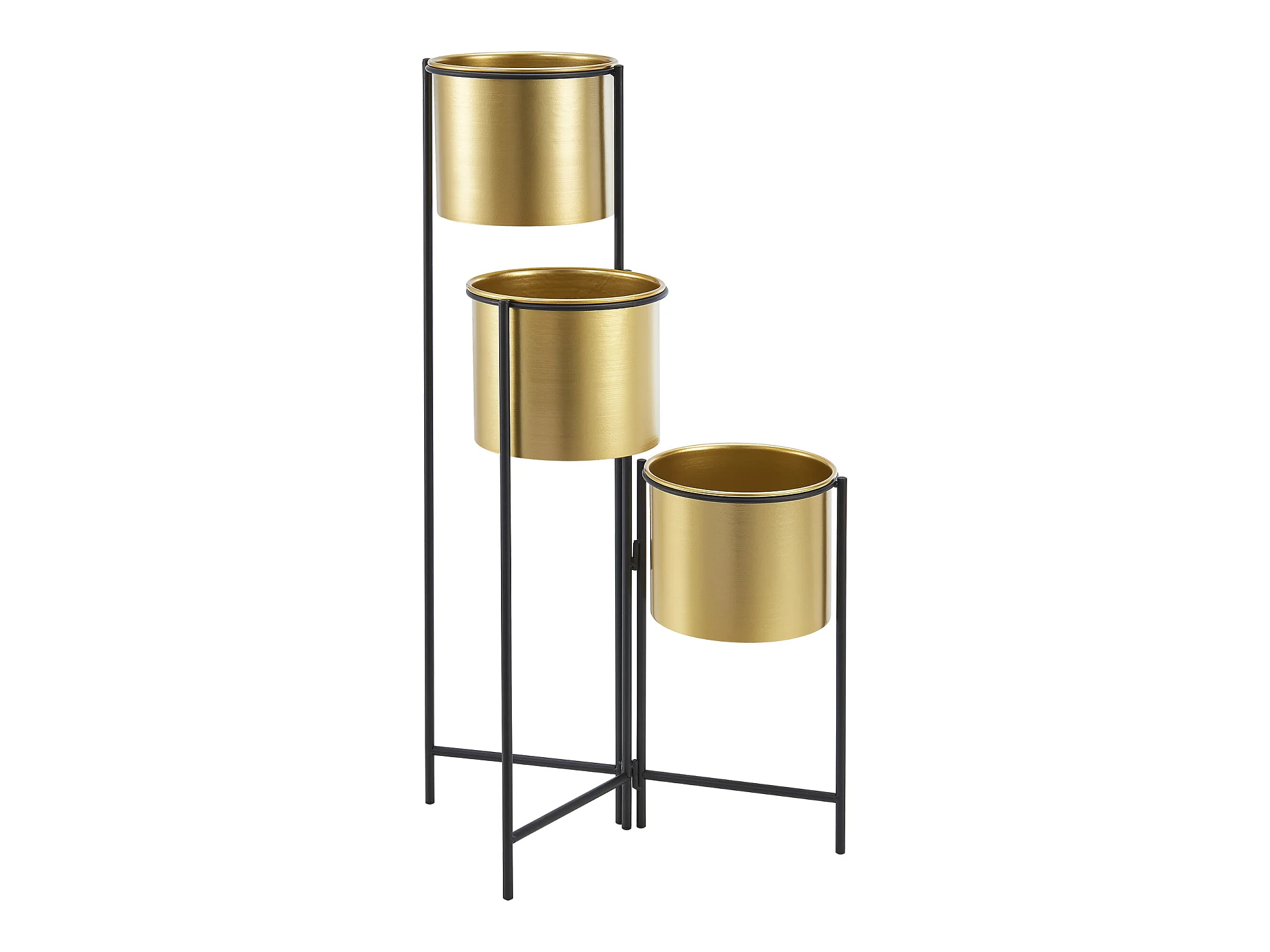 Support de plante (à 3 cache-pots) Doel pliable noir laiton [en.casa]