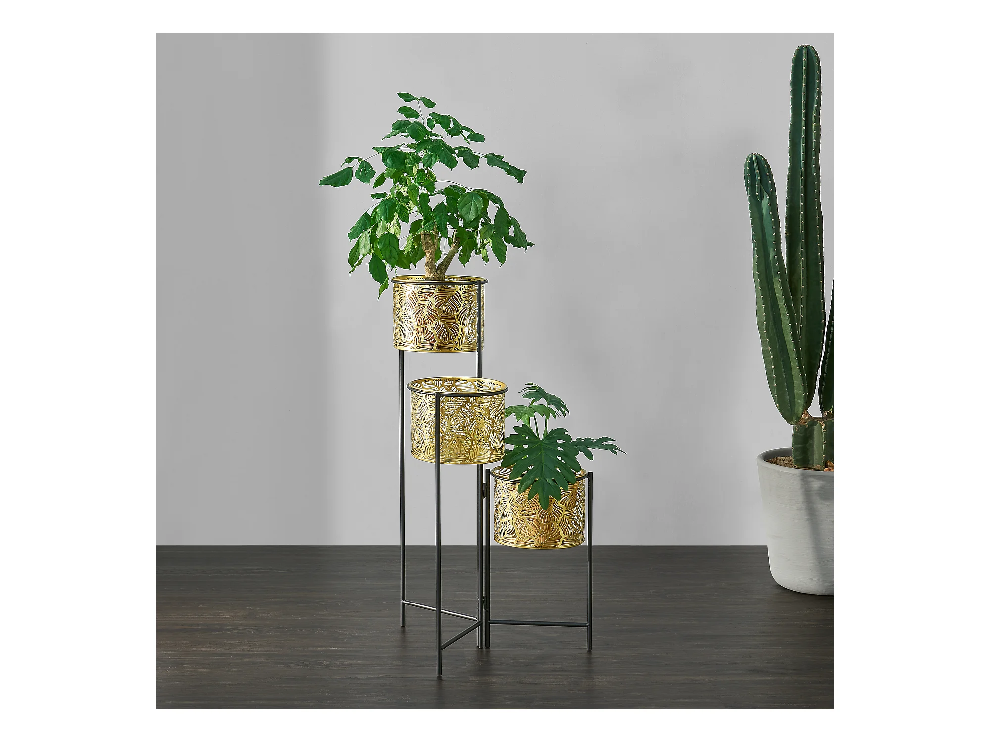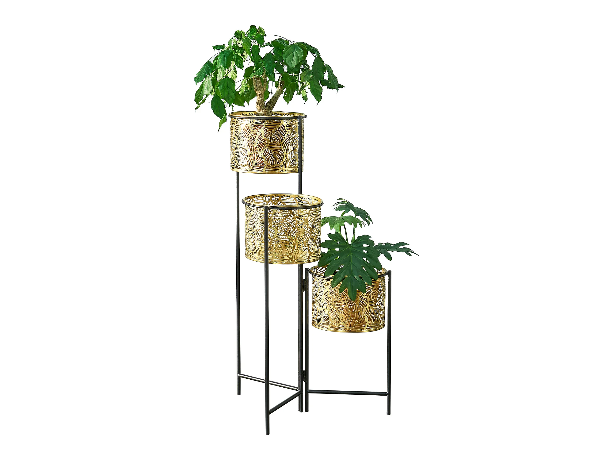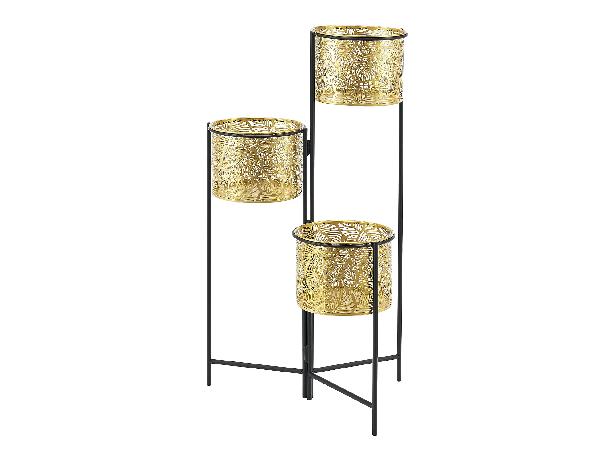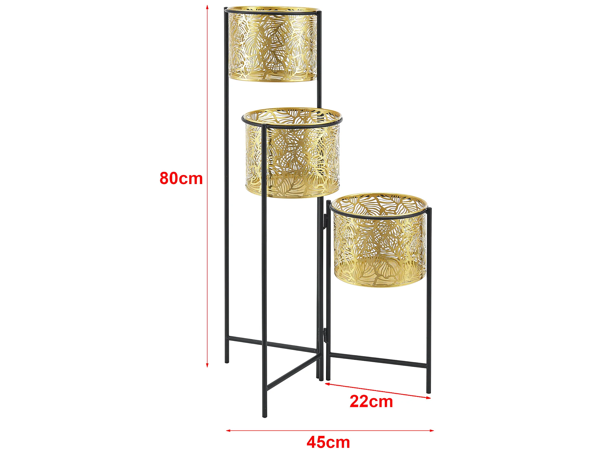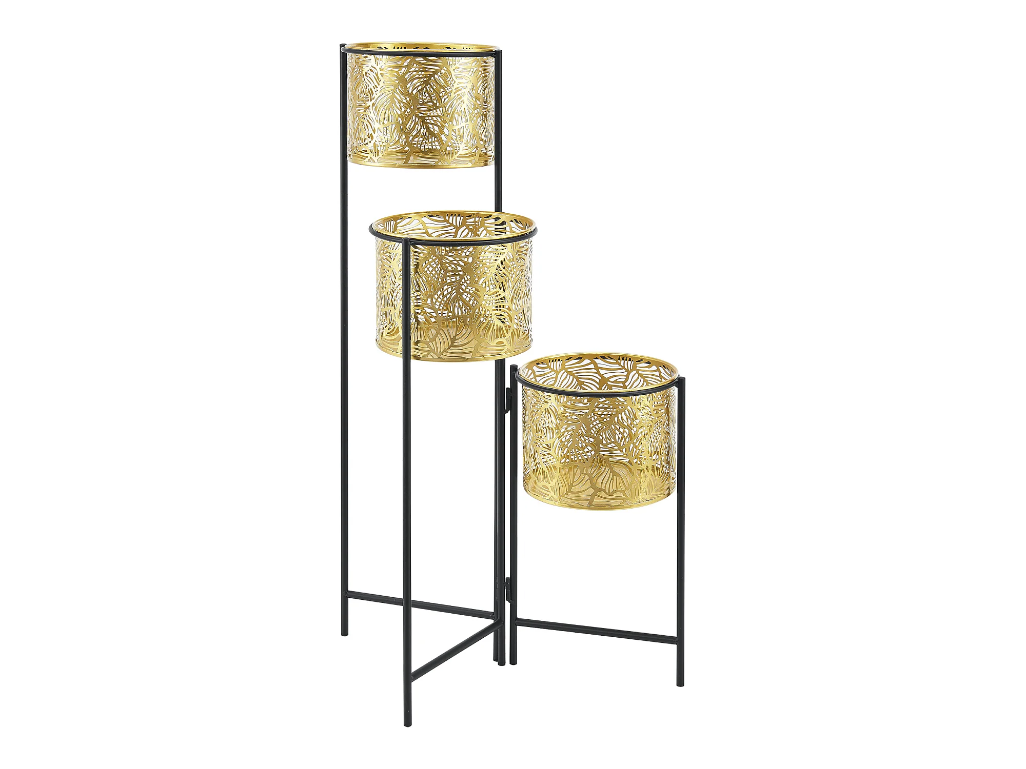 Support de plante (à 3 cache-pots) Doel pliable noir laiton [en.casa]