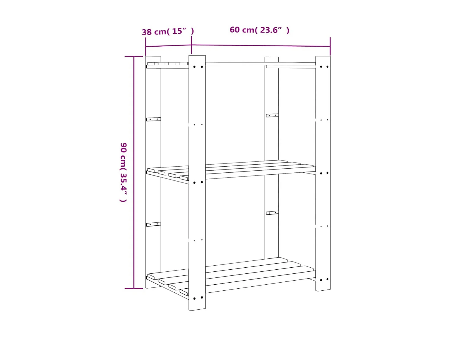 Support de rangement à 3 niveaux gris 60x38x90 bois de pin