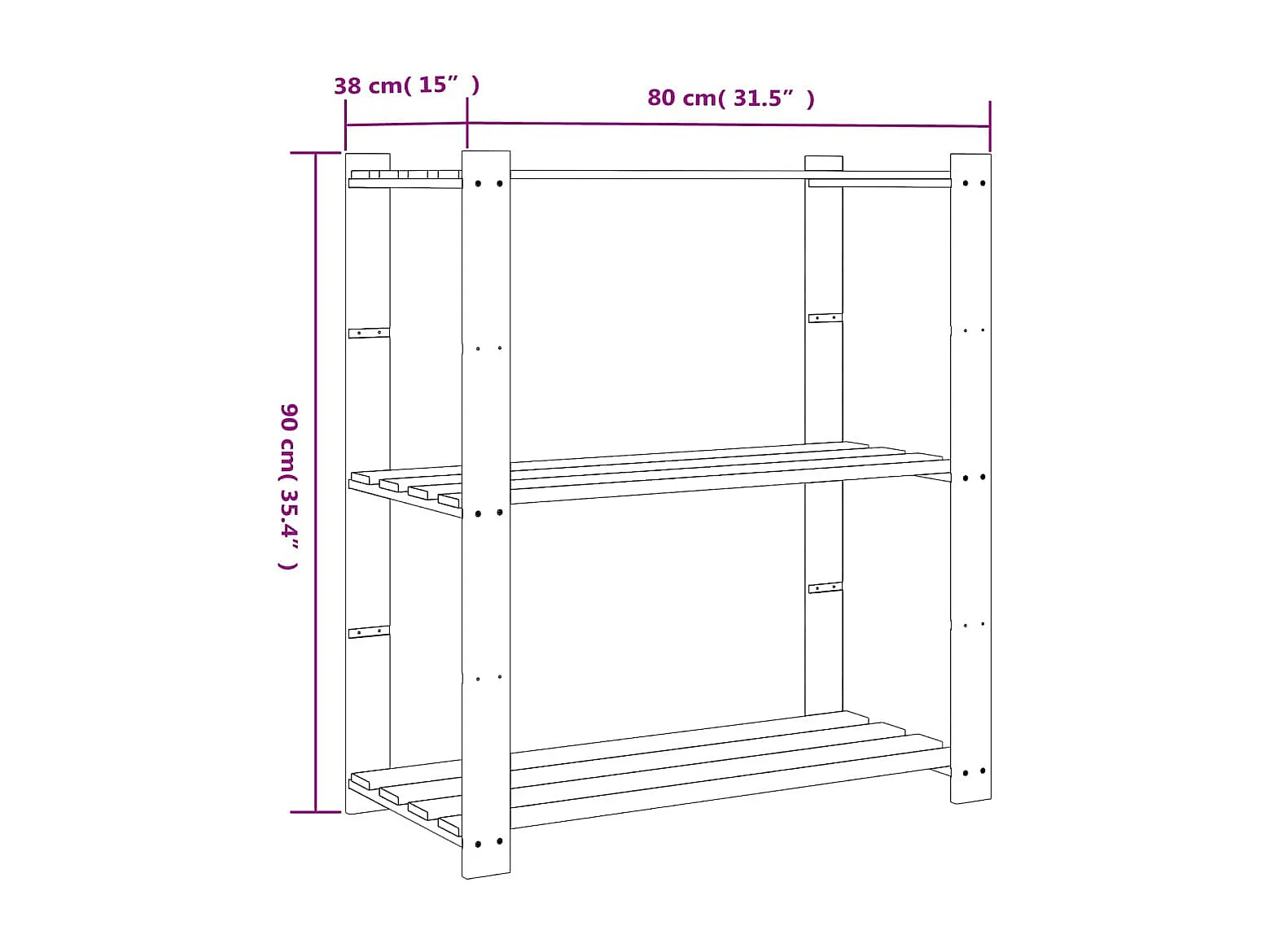Support de rangement à 3 niveaux gris 80x38x90 bois de pin