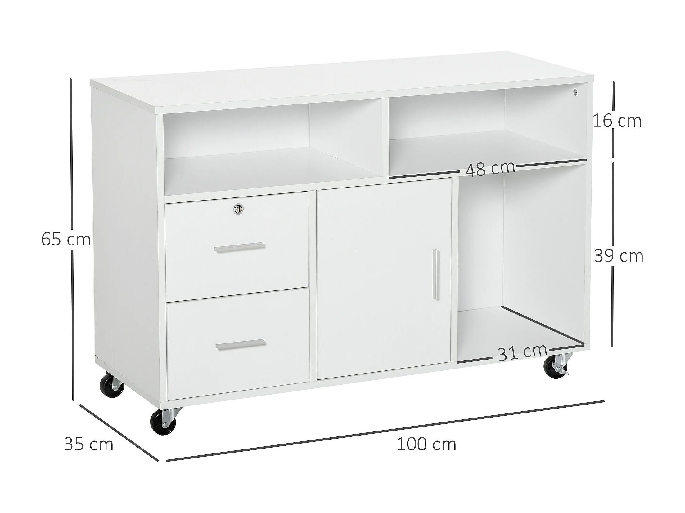 Support d'imprimante mobile 2 tiroirs coulissants 3 niches porte étagère dim. 100 x 35 x 65 cm blanc