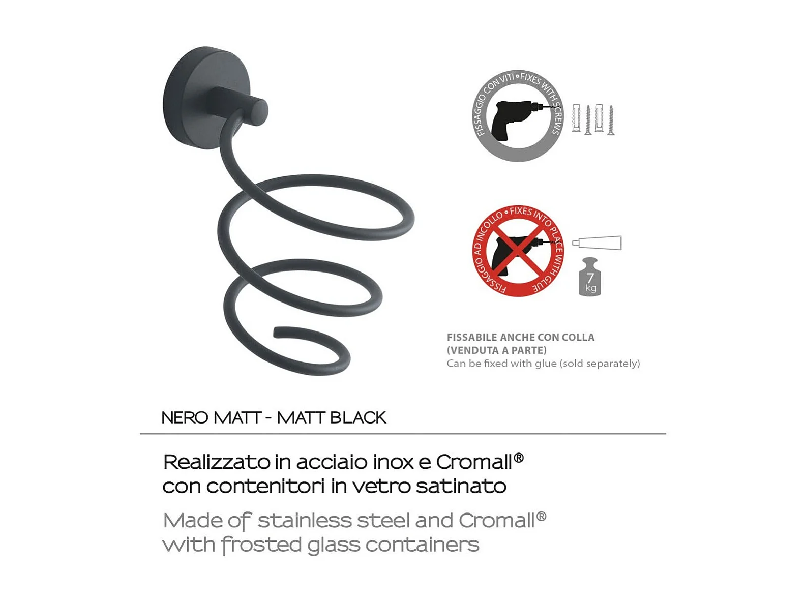 Support Mural Pour Sèche-Cheveux En Acier Inoxydable Noir Mat | Violetta