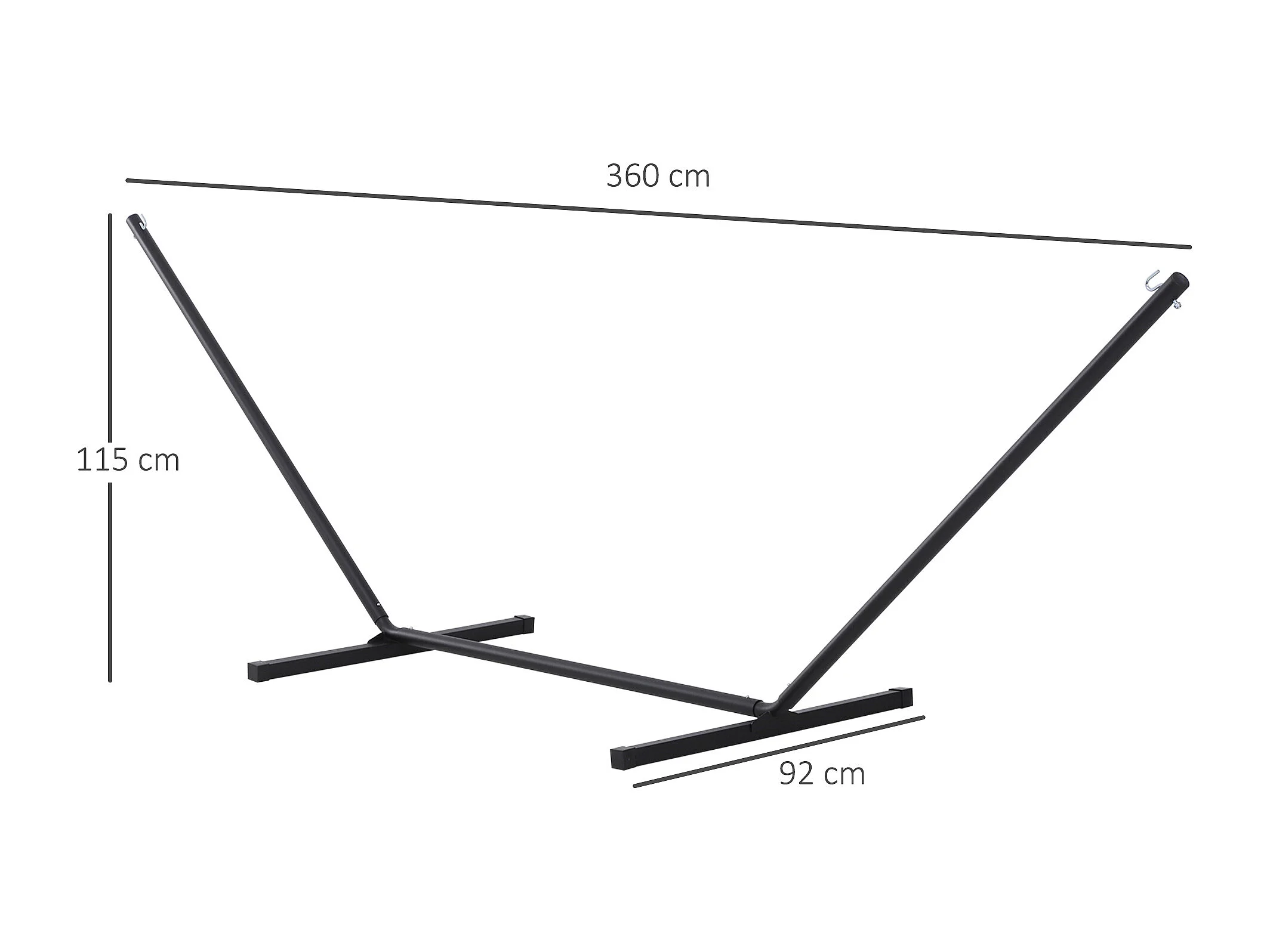Support pied de hamac structure robuste métal époxy noir dim. 3,60L x 0,92l x 1,15H m