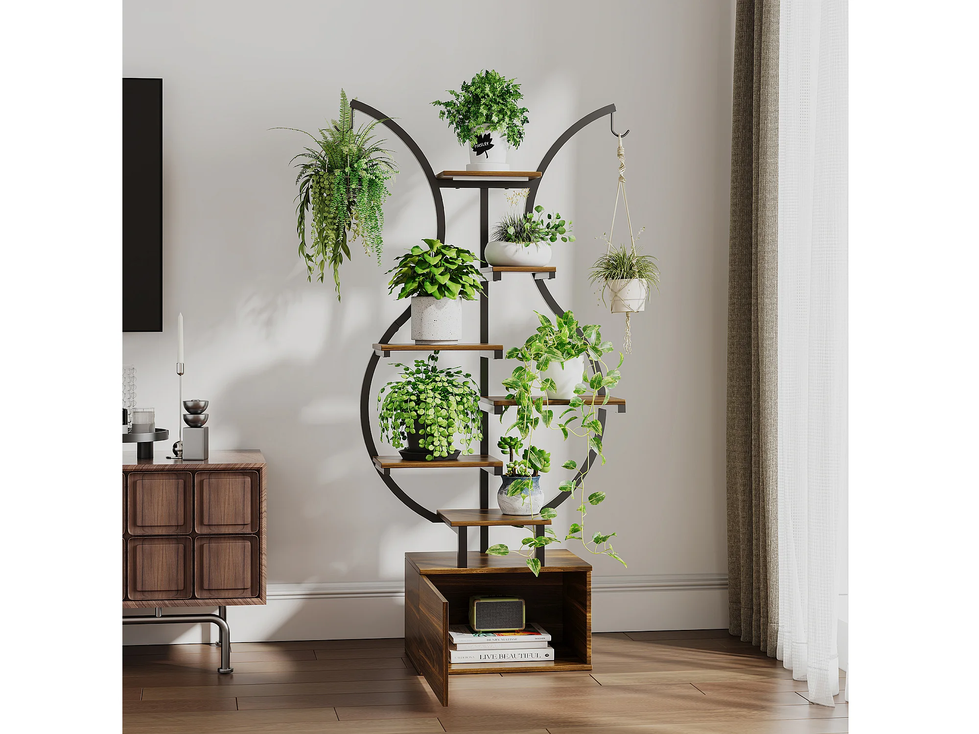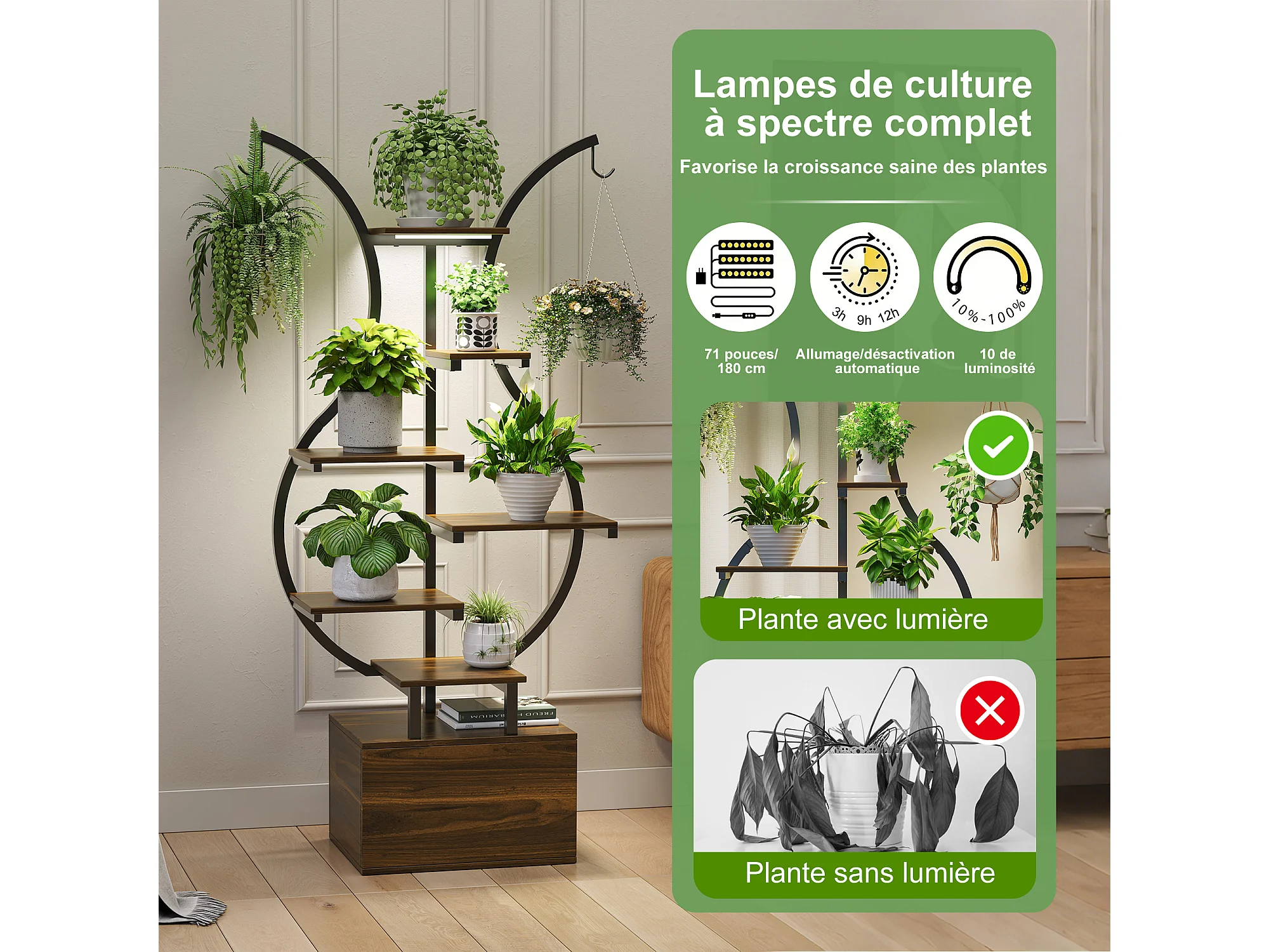 Support pour plantes avec lampe horticole et crochets - rangement - 40 x 30 x 142 cm