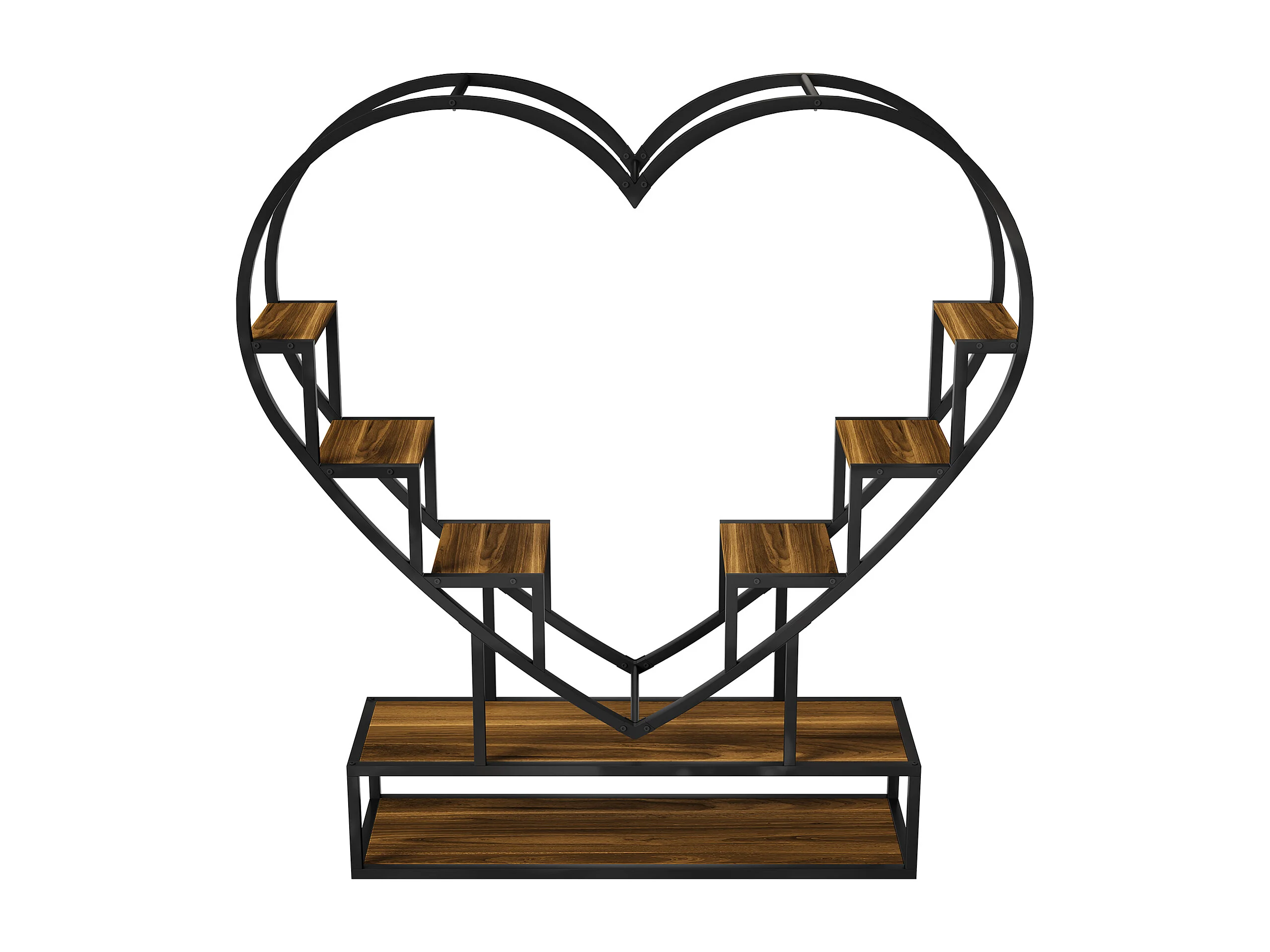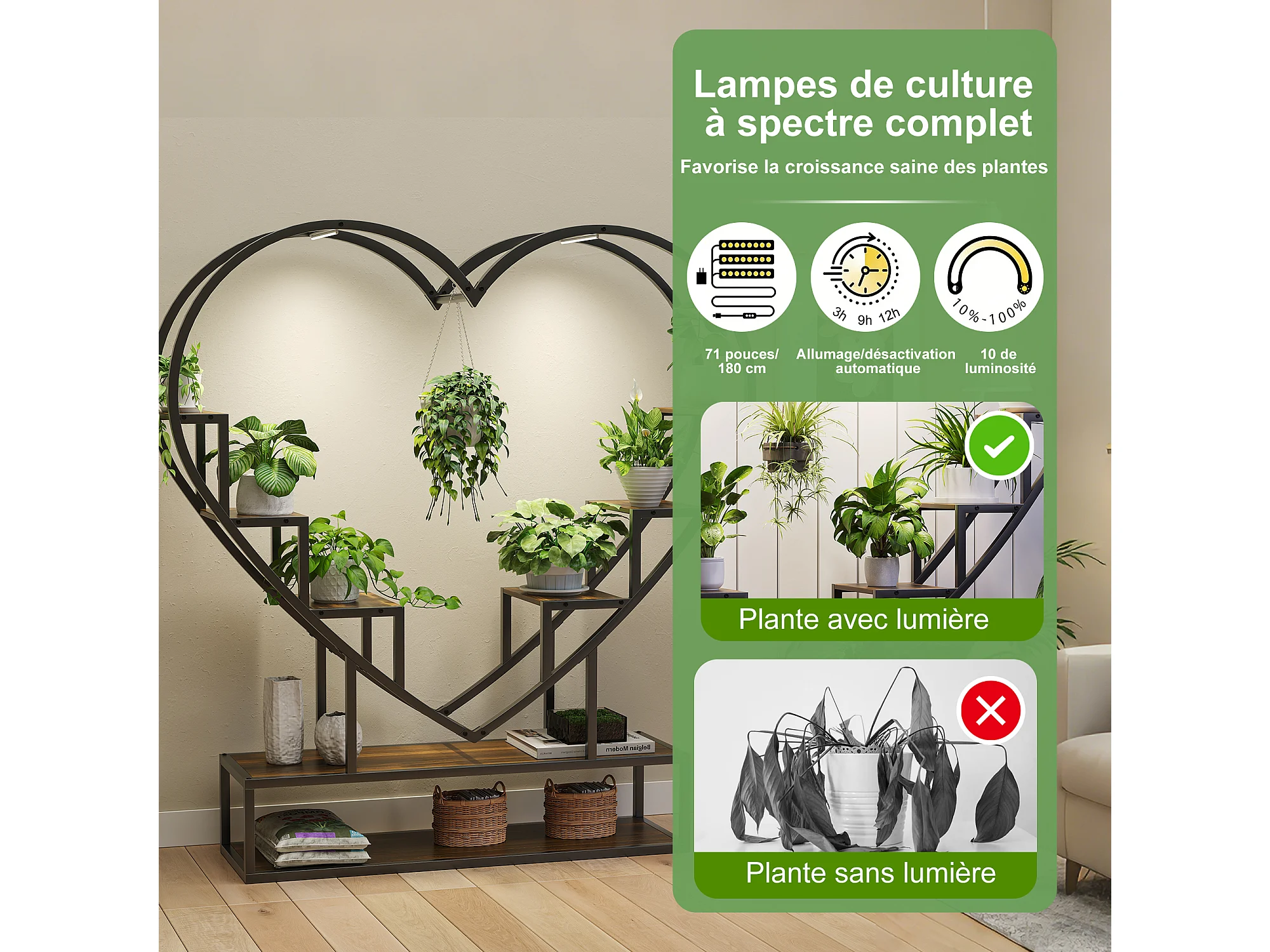 Support pour plantes en forme de cœur avec lampe horticole et rangement - 100 x 26 x 138 cm