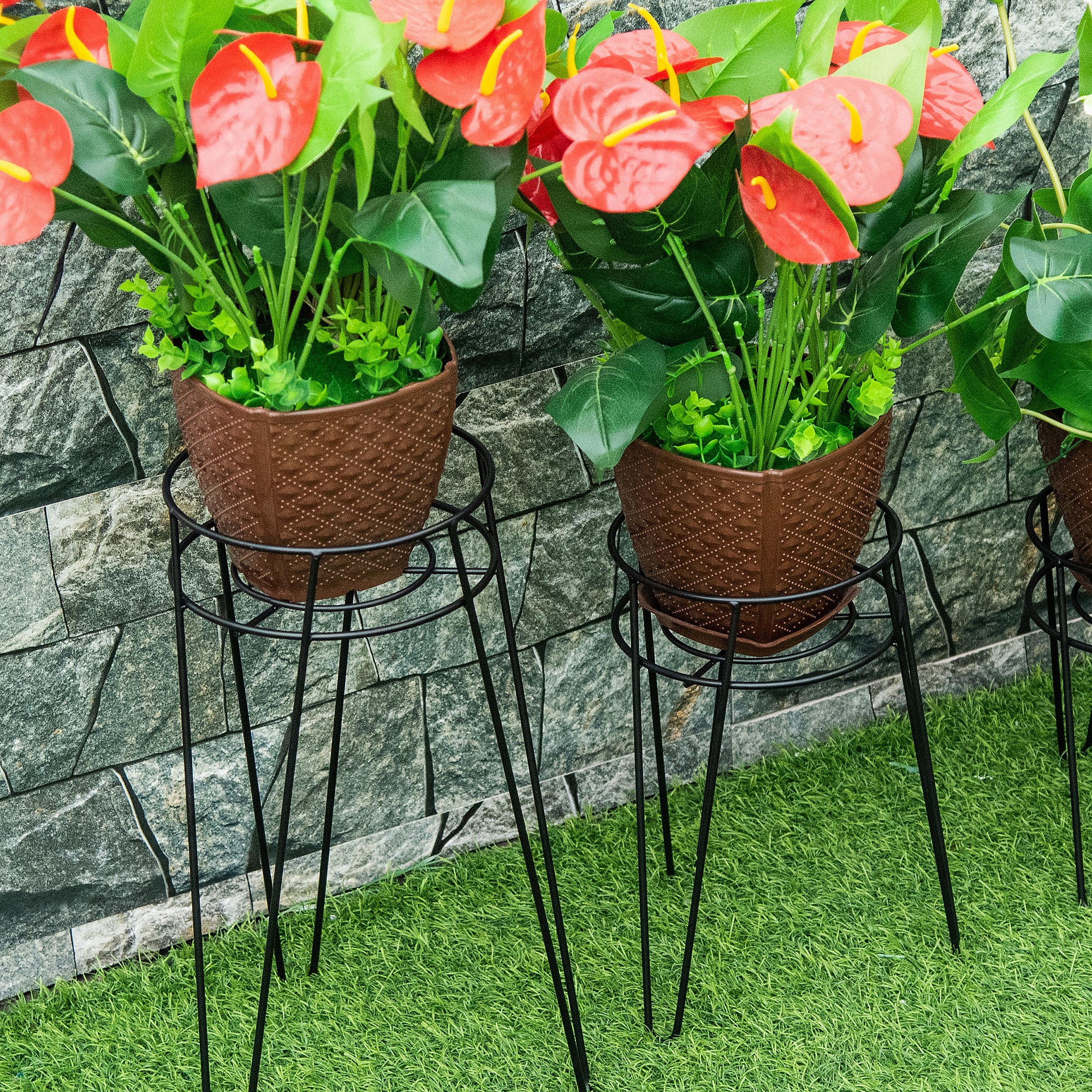 Supports de pots de fleurs design en épingle - supports à plantes - métal époxy noir