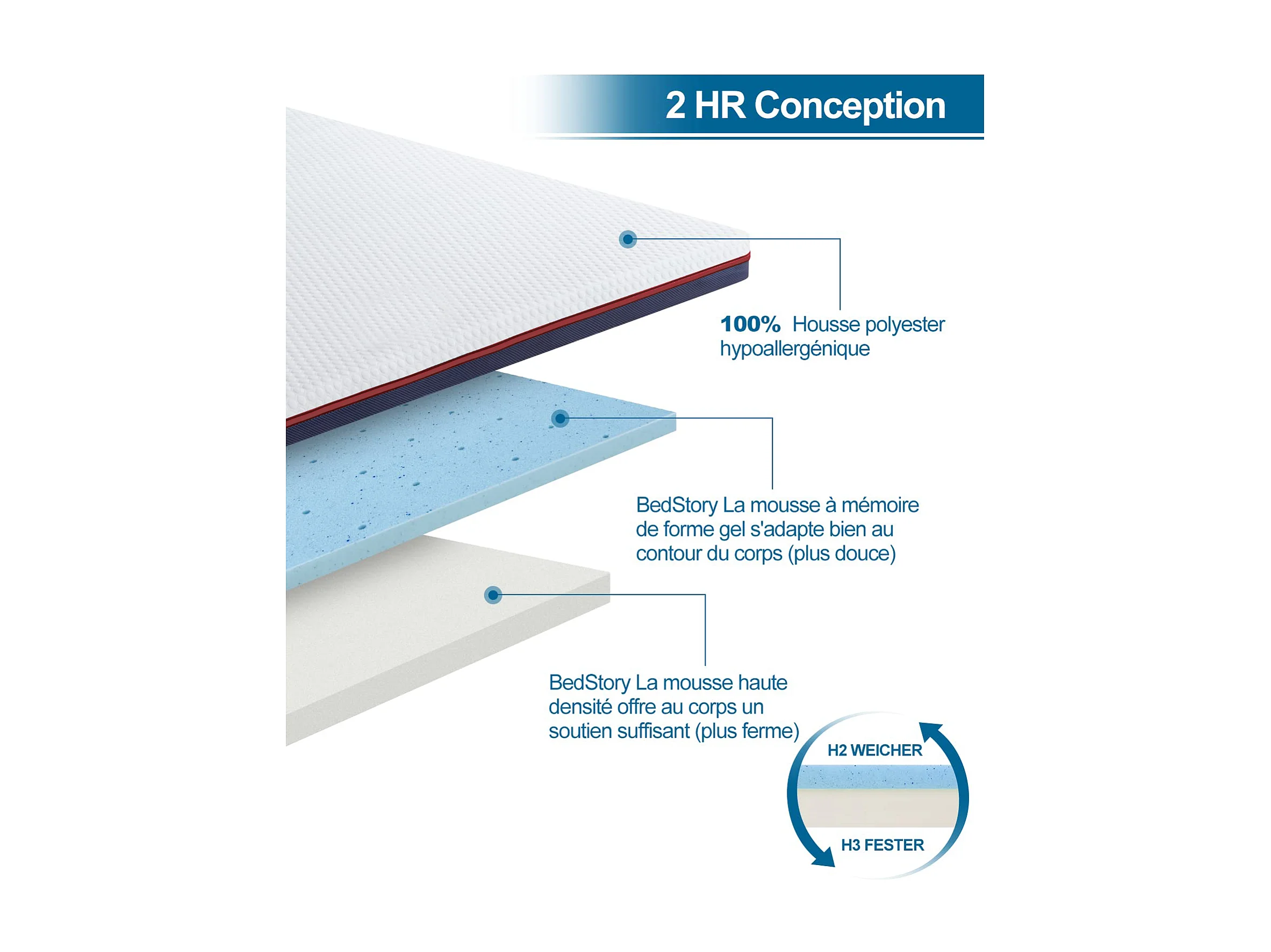 sur-Matelas 160x200 face de contact Mousse à Mémoire de Forme 55Kg/m3 Hauteur 4 cm Déhoussable (160_x_200_cm)