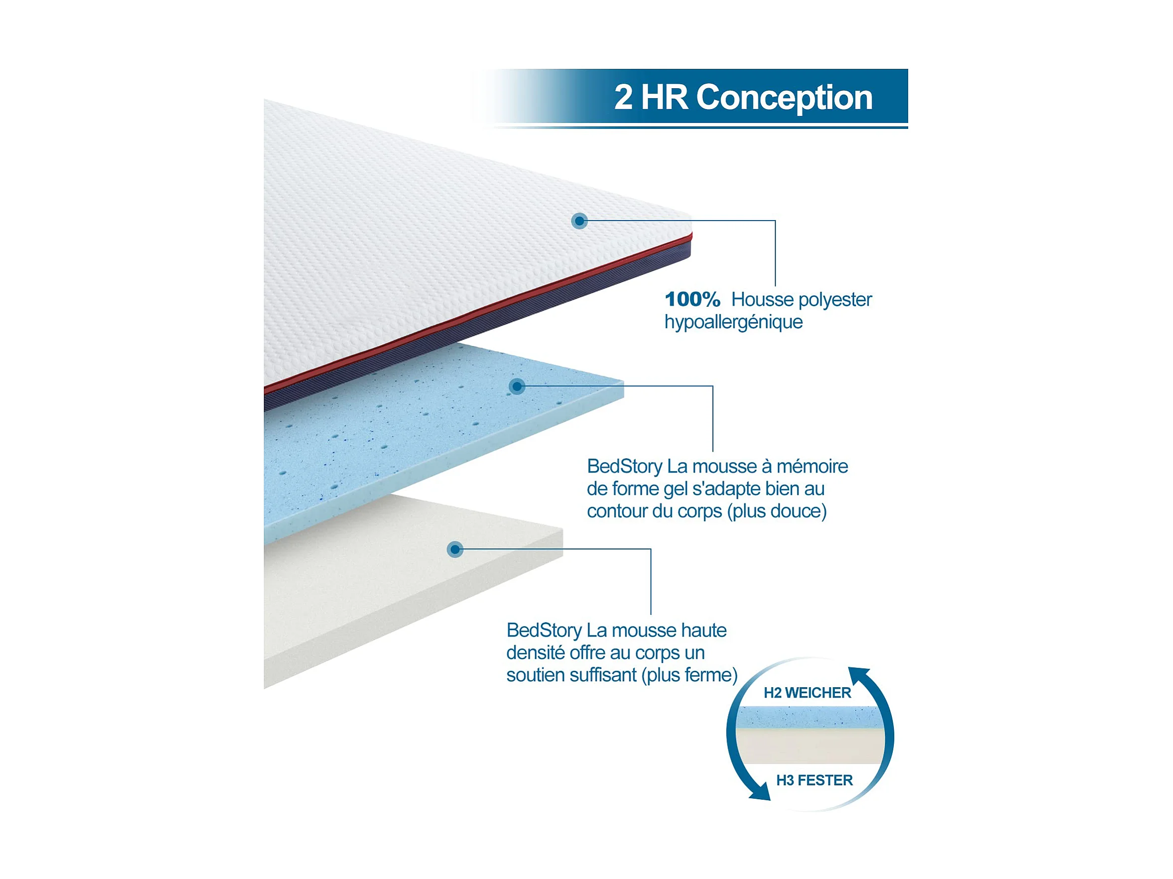 Surmatelas 180x200 cm INRE, Epaisseur 8cm, Mousse à mémoire de forme, haute densité, avec housse hypoallergénique lavable