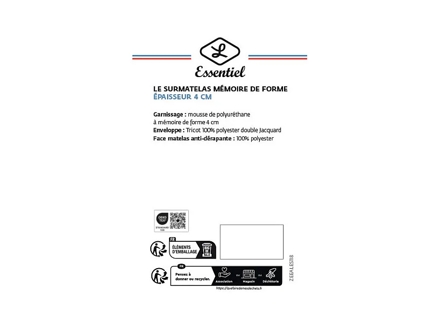 Surmatelas Lestra "Fjord Essentiel" à mémoire de forme 160 x 200 cm