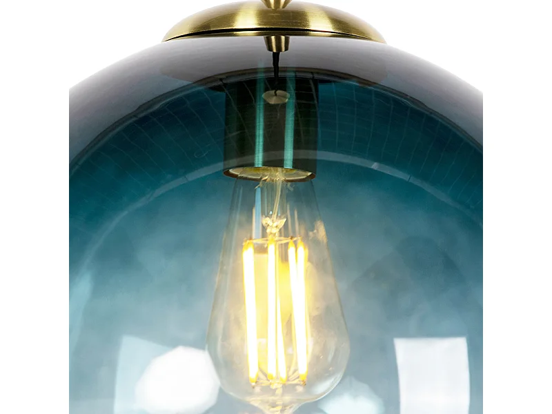 Suspension Art déco en laiton avec verre bleu océan 20 cm - Pallon