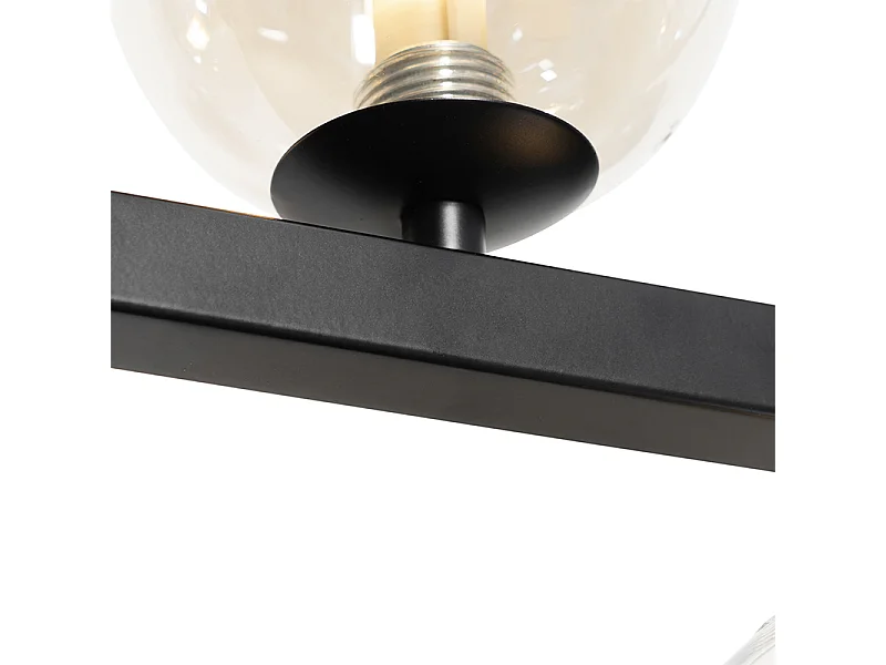 Suspension Art Déco noire avec verre ambré 8 lumières - David
