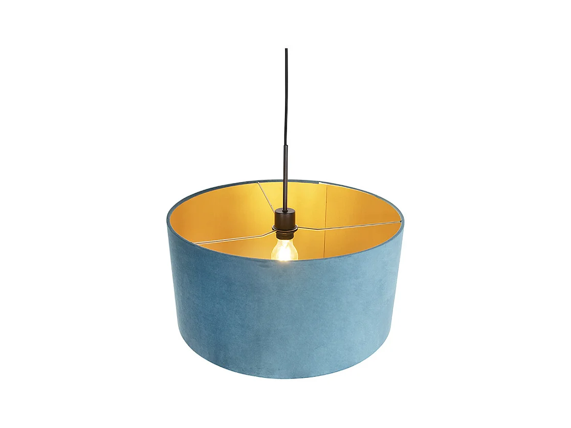 Suspension avec abat-jour en velours bleu avec doré 50 cm - Combi