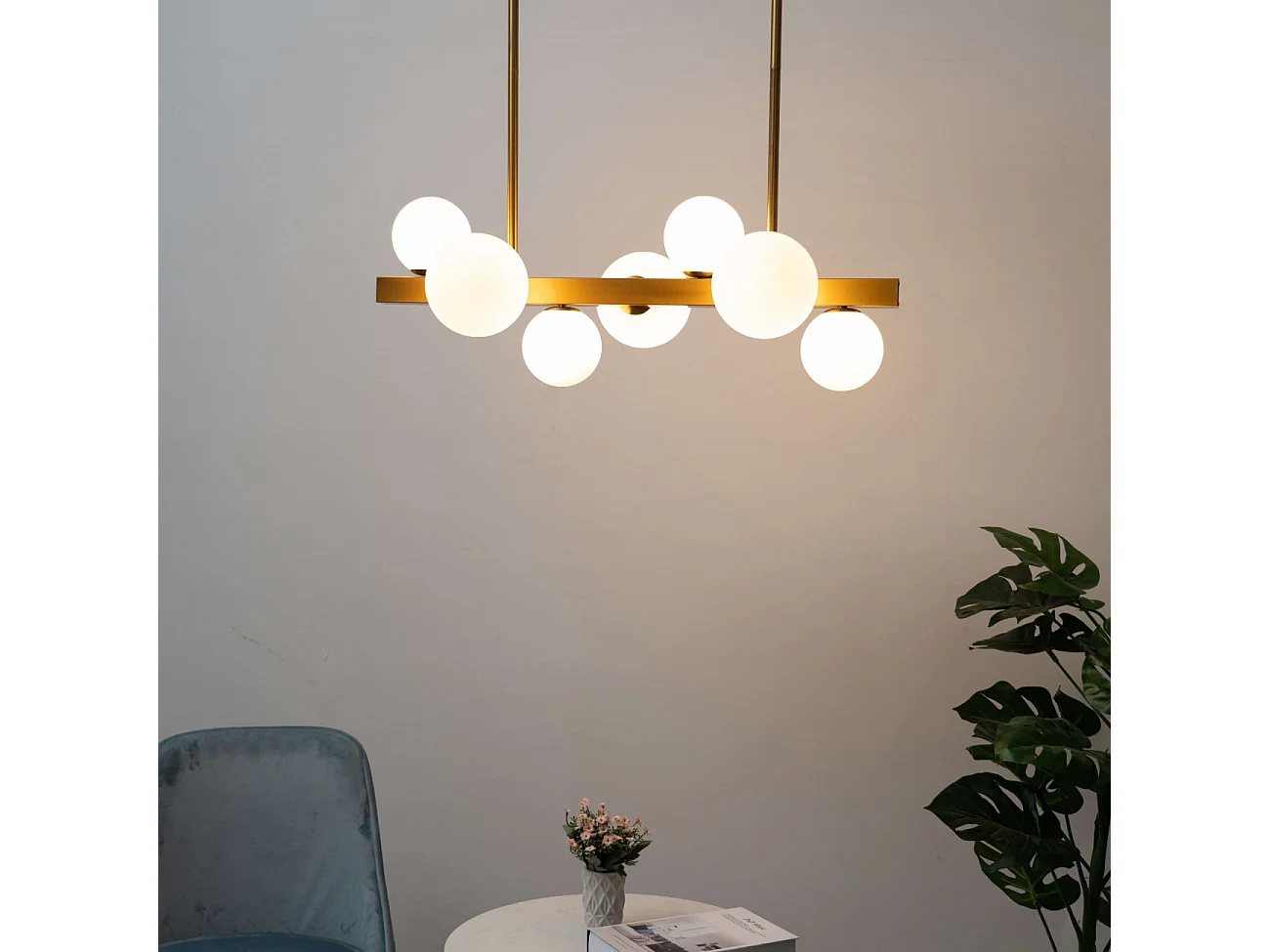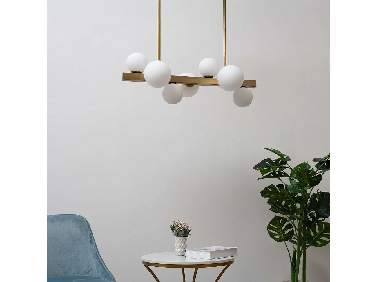 Suspension barre à sphères en verre blanc - Oromia