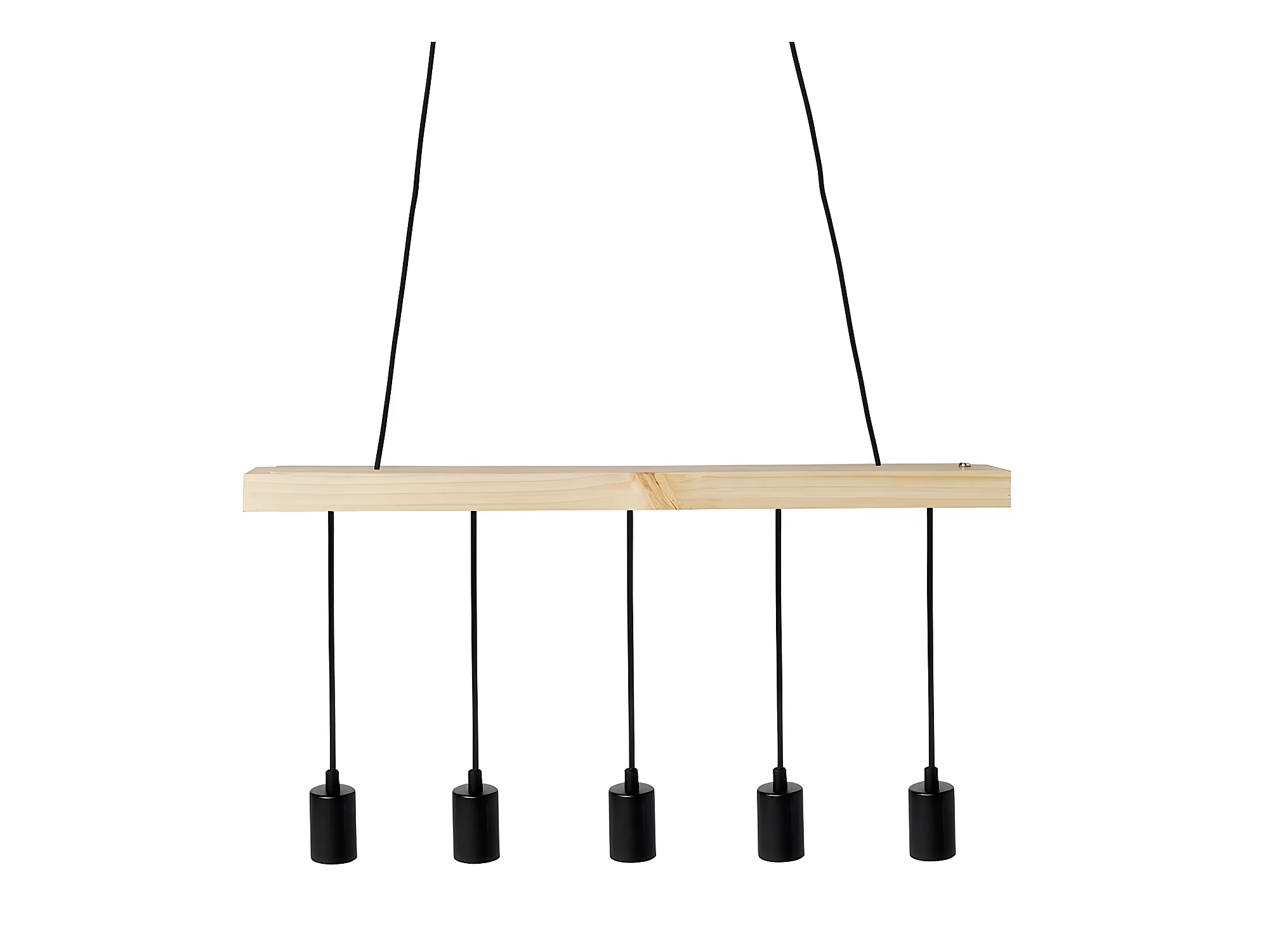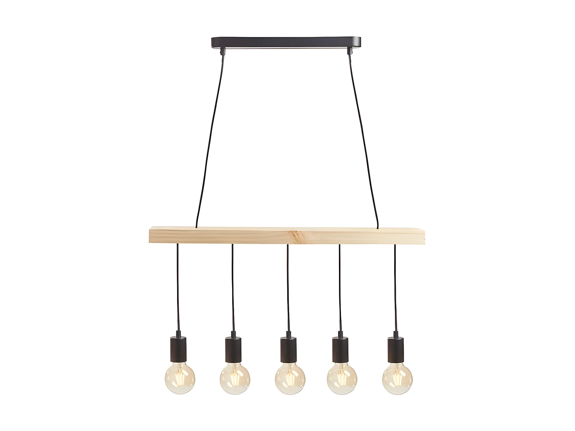 Suspension 3 lampes en bois d'eucalyptus et métal noir - Abby