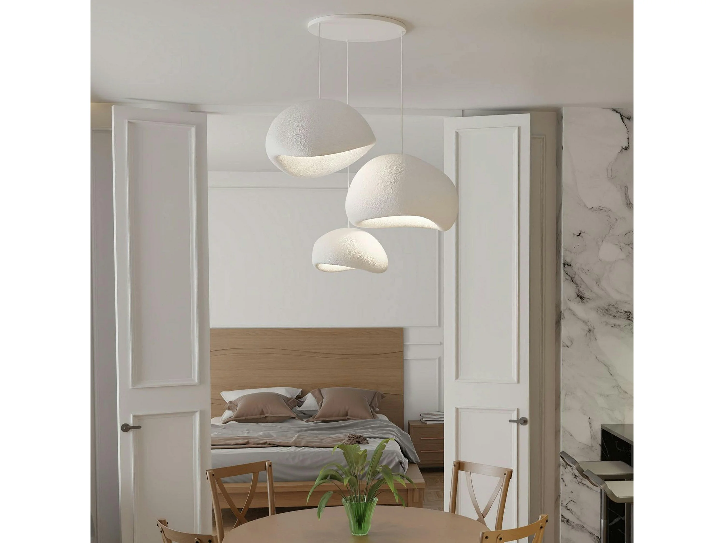 Suspension blanche design organique 3 abat-jour H.28 cm NOXIS