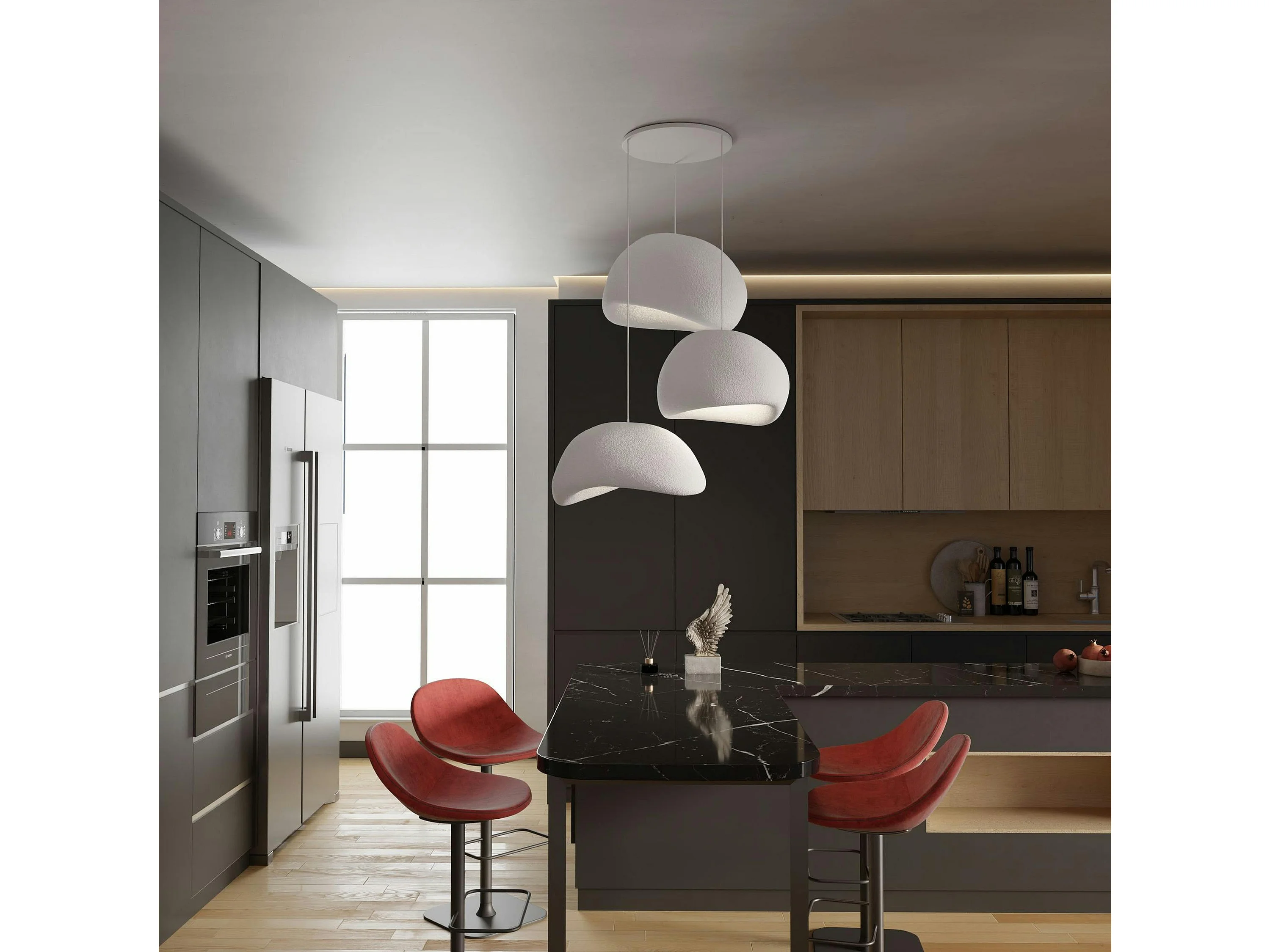 Suspension blanche moderne 3 abat-jour organiques 85 cm NOXIS