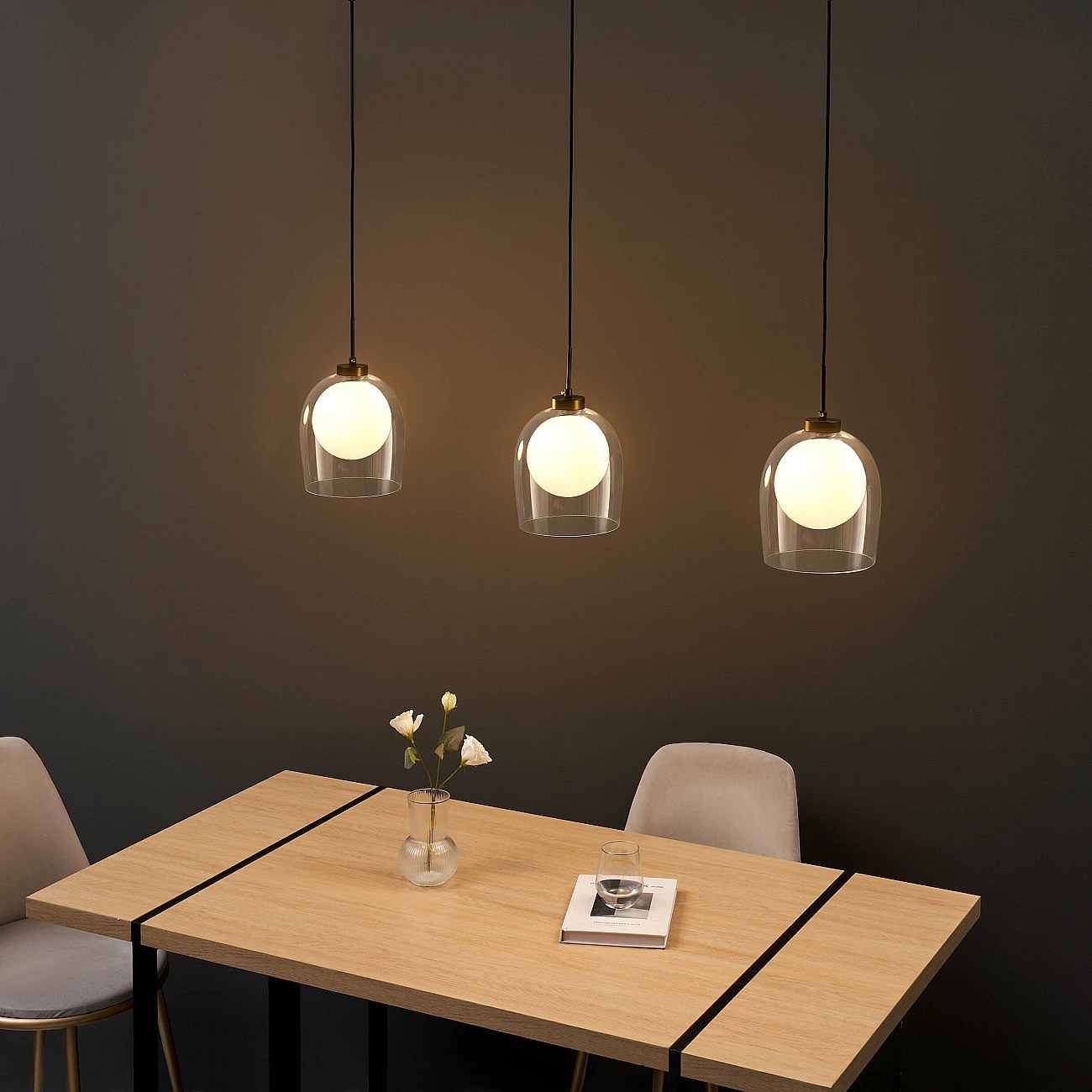 Grand lustre élégant doré 9 boules transparentes - Audrey