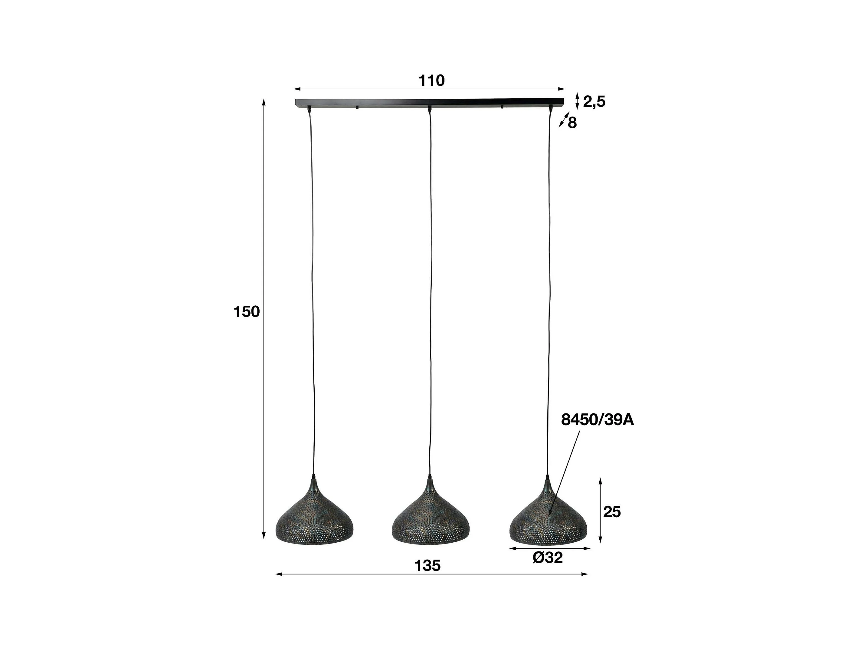 Suspension contemporaine ajourée 3 lampes forme bougie RALF